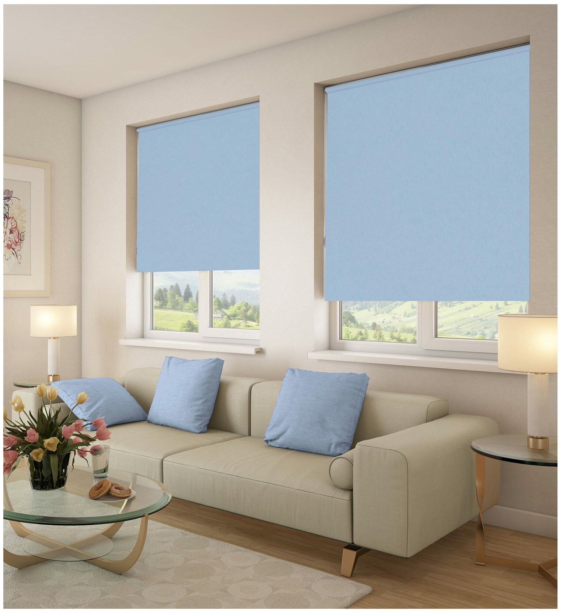 110*160 Универсальная рулонная штора Peora с/з 80%, Однотонный Голубой 79312 сет сбоку