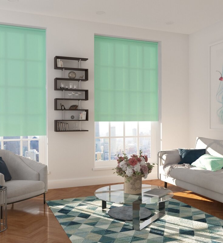 115*160 Универсальная рулонная штора Peora с/з 80%, Однотонный Зеленый 79315 сет сбоку