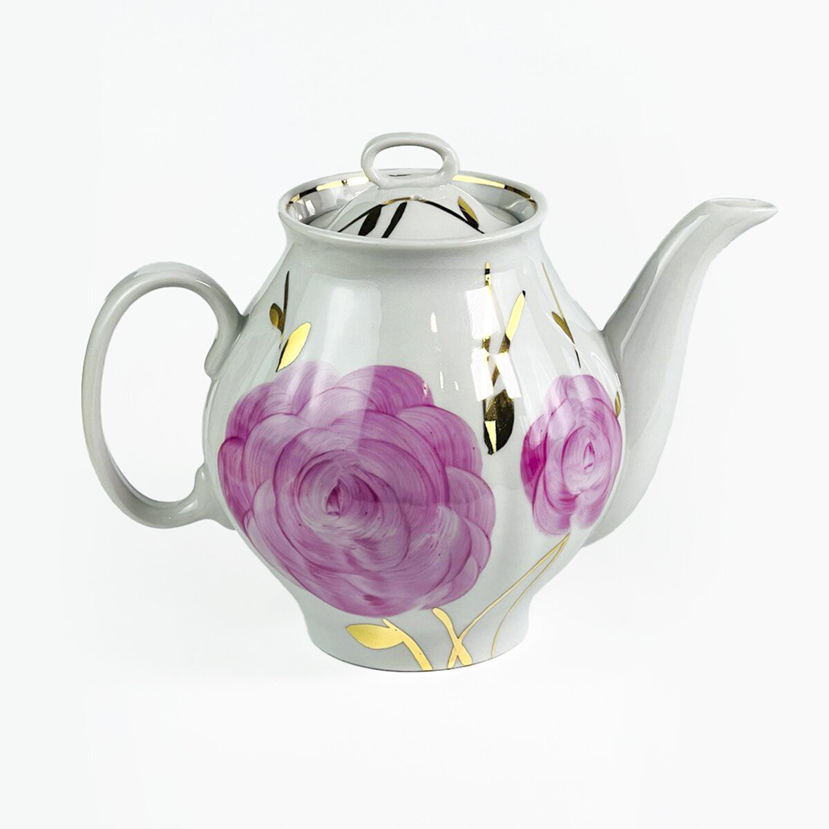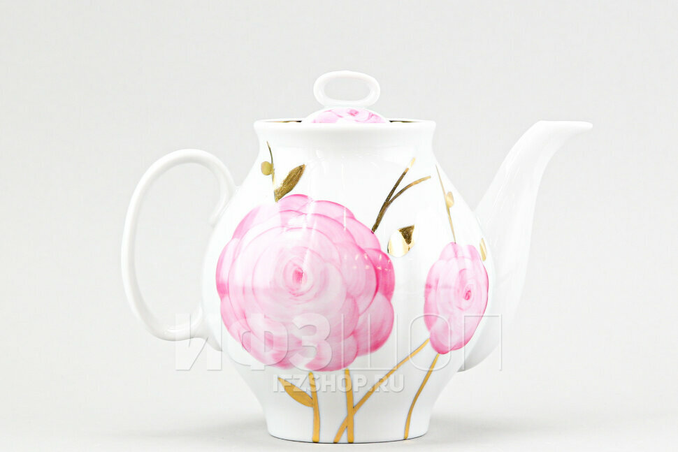 Чайник заварочный "Розовая сирень" на форме "Белый лебедь" от Дулевского фарфорового завода