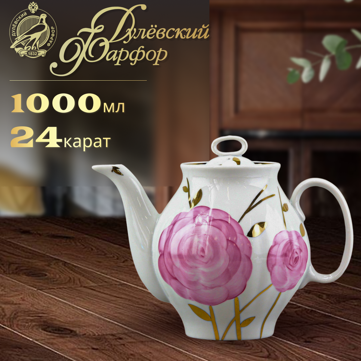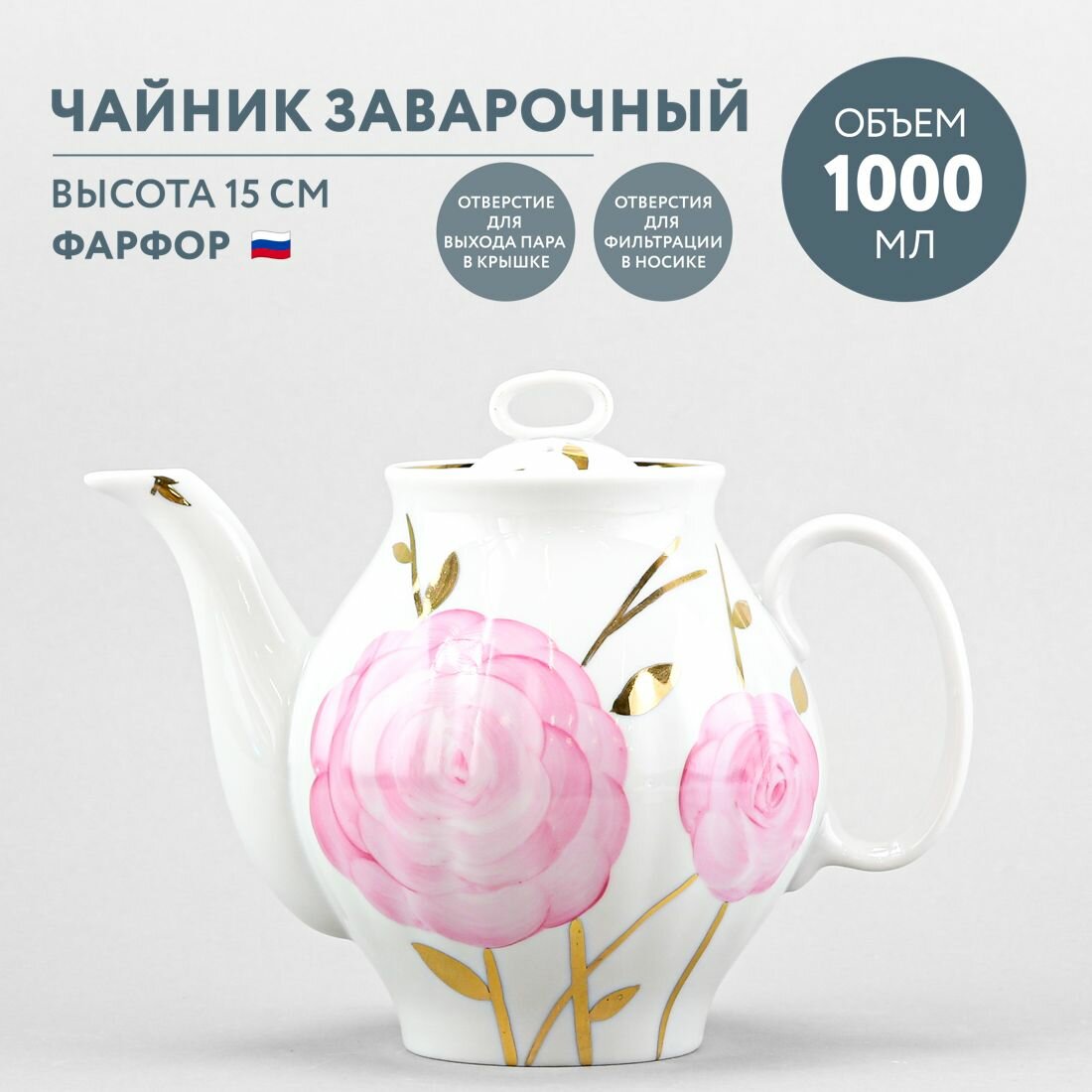 Чайник заварочный 1000 мл Дулевский фарфоровый завод Белый лебедь Весенний