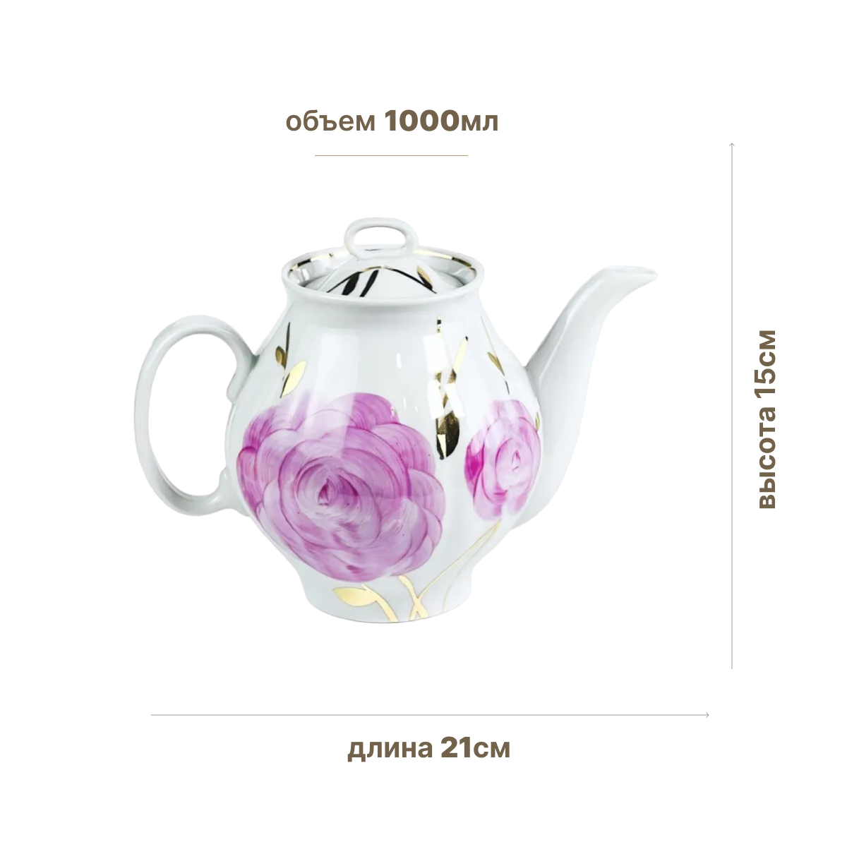 Чайник заварочный "Розовая сирень" 1л на форме "Белый лебедь"