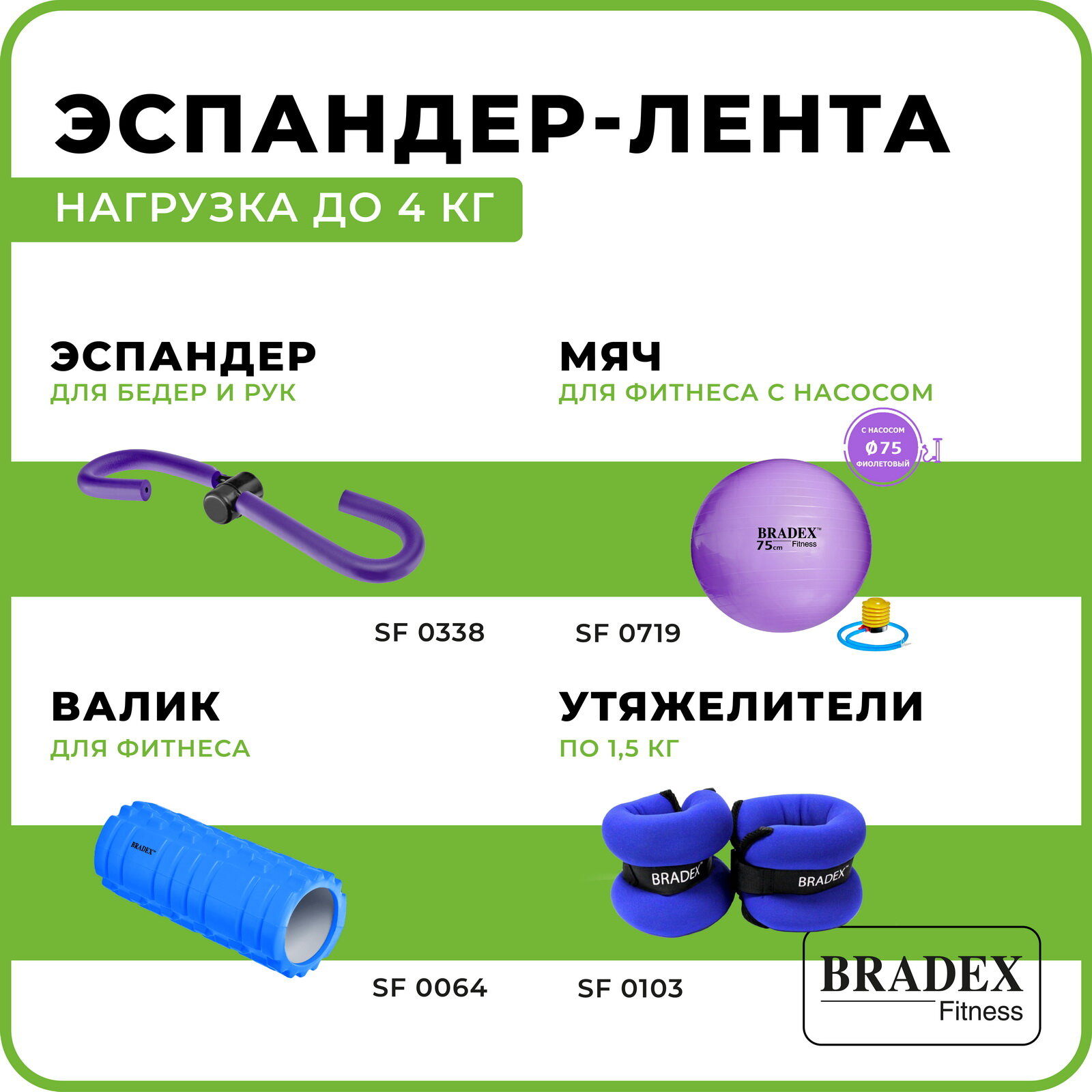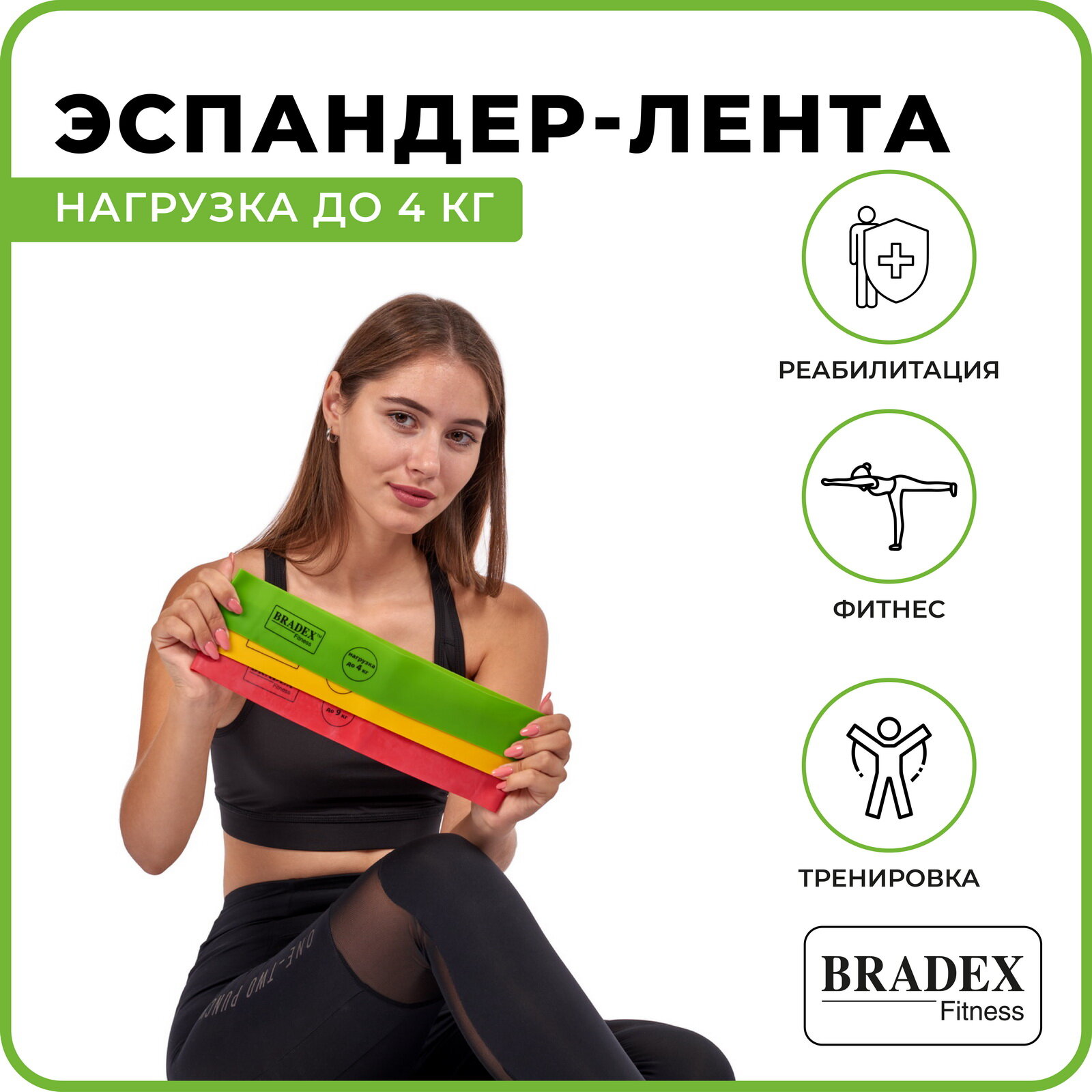 Лента-эспандер Bradex SF 0259 дл.:30см ш.:5см нагр.:4кг зеленый интересное: