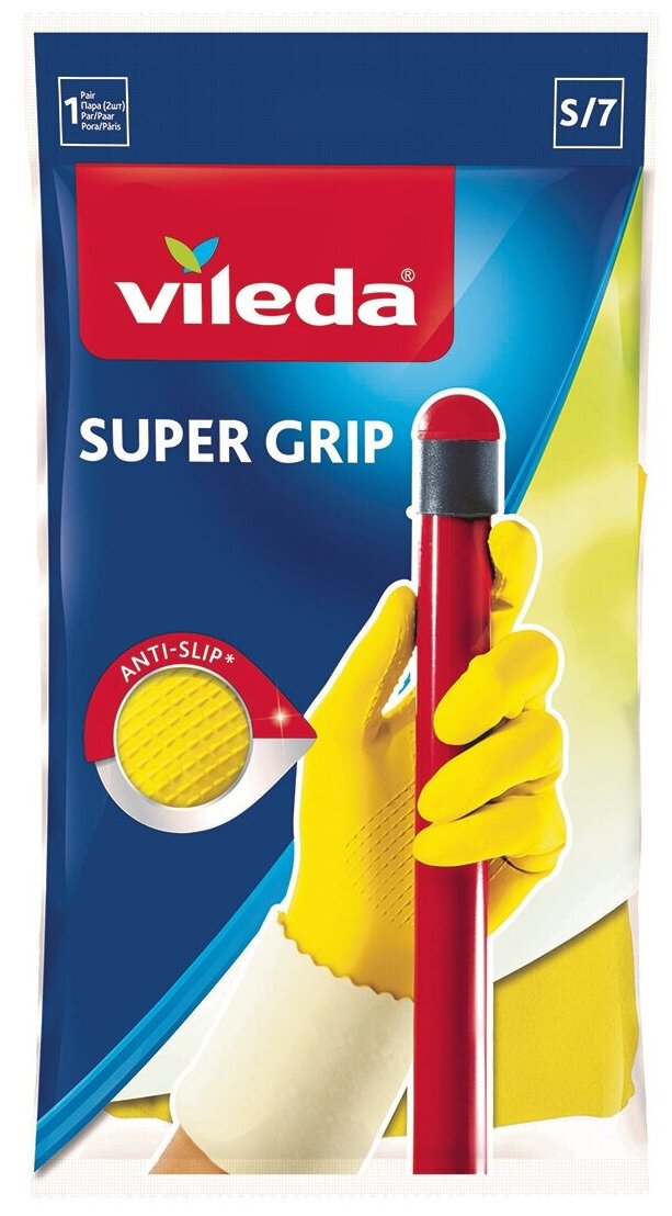 Перчатки Vileda универсальные Super Grip, 1 пара, размер S, цвет желтый