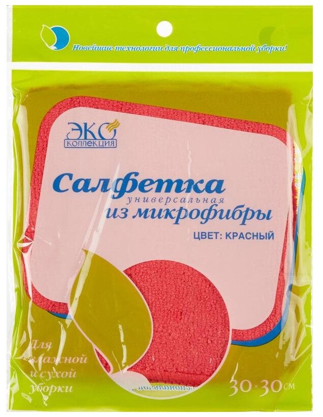 Салфетка хозяйственная ЭкоКоллекция (30x30см) микрофибра 300 г/кв.м, красная, 1шт. (4650057051850)