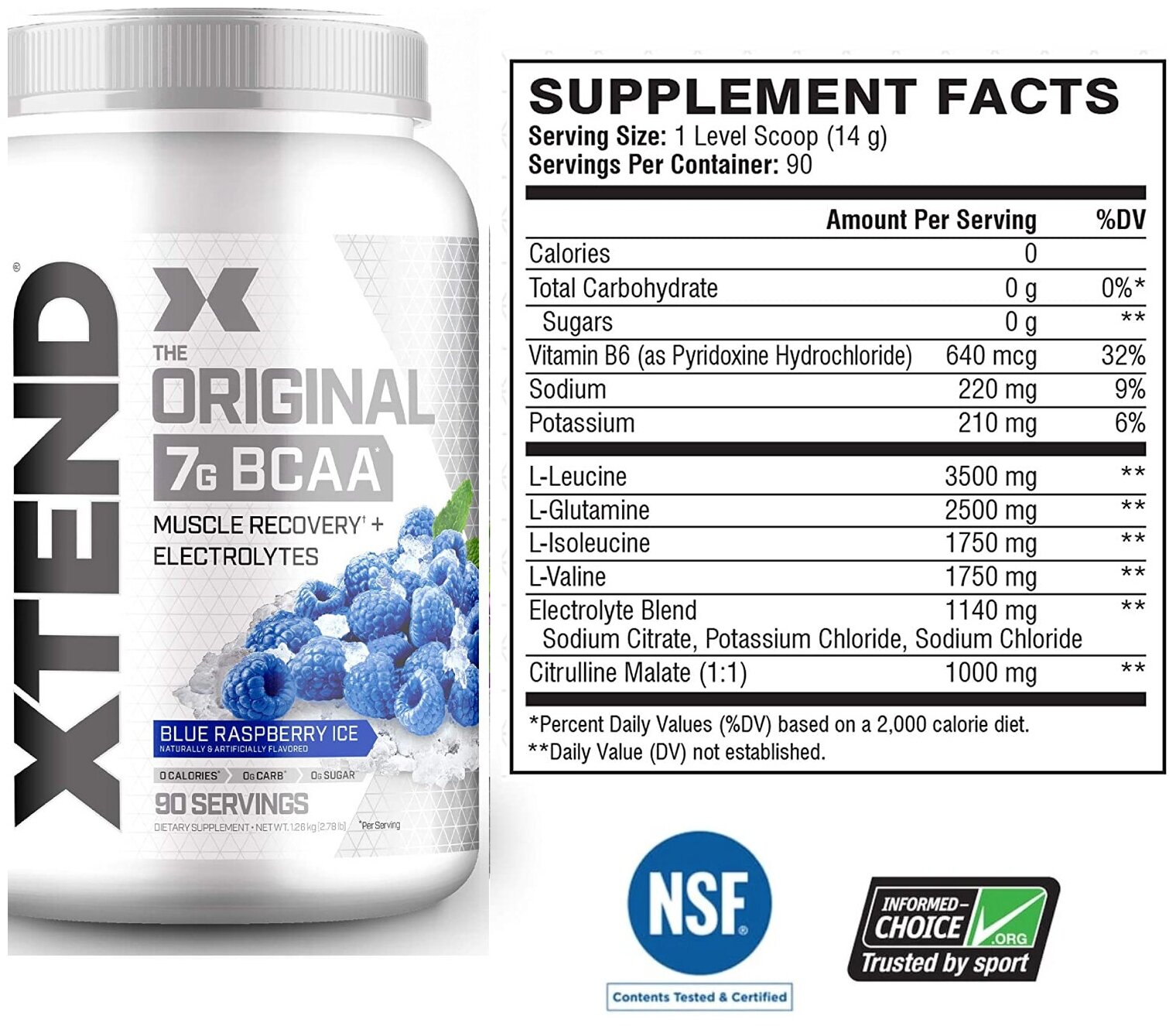 Аминокислотный комплекс BCAA Xtend с витамином B6 - Голубая ледяная малина 1220 гр
