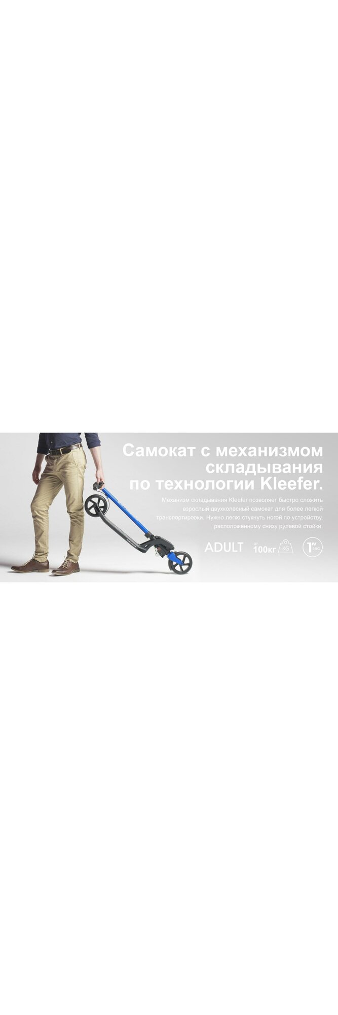 | Плюсы: | Самая продуманная система складывания самоката!