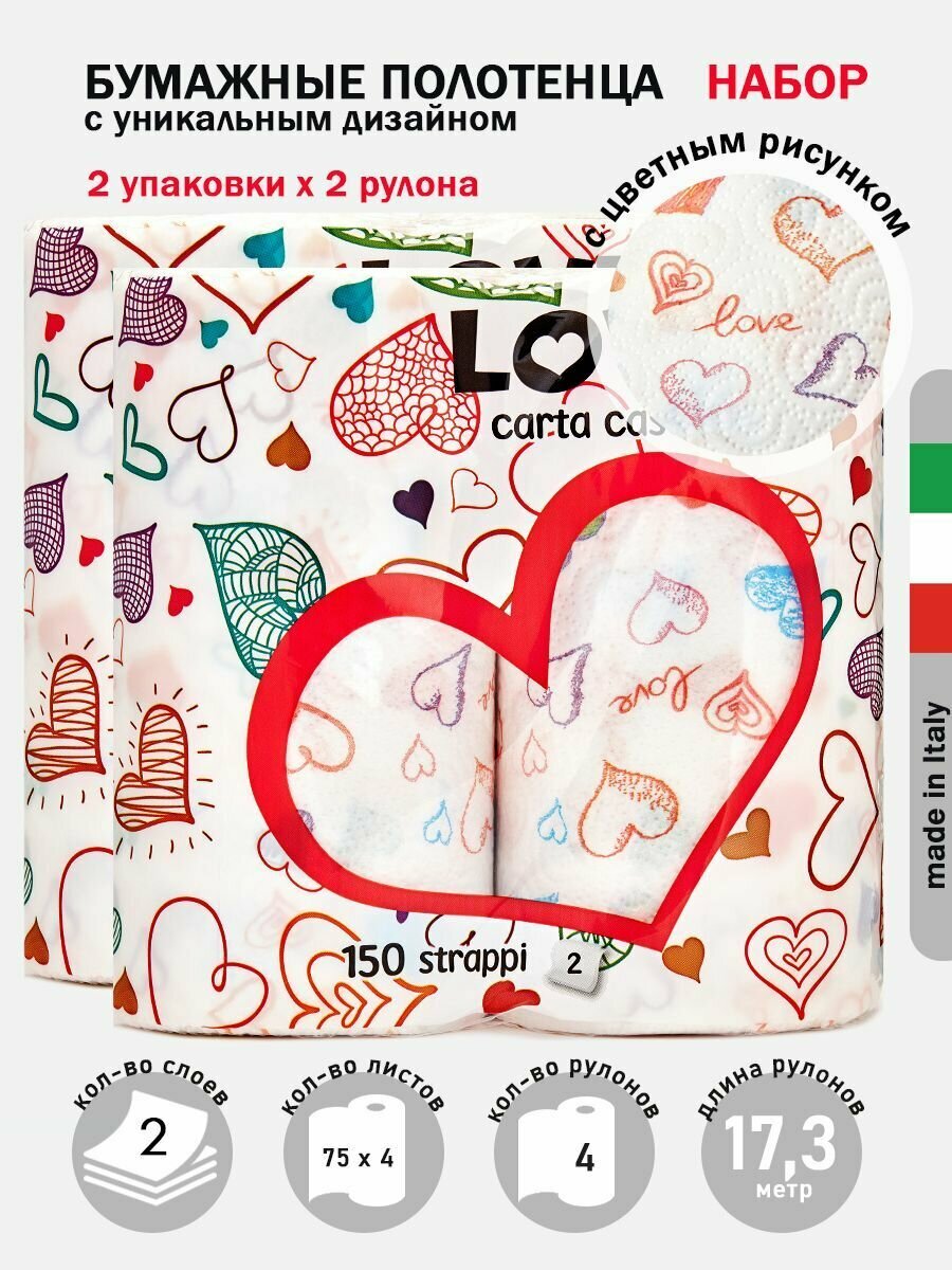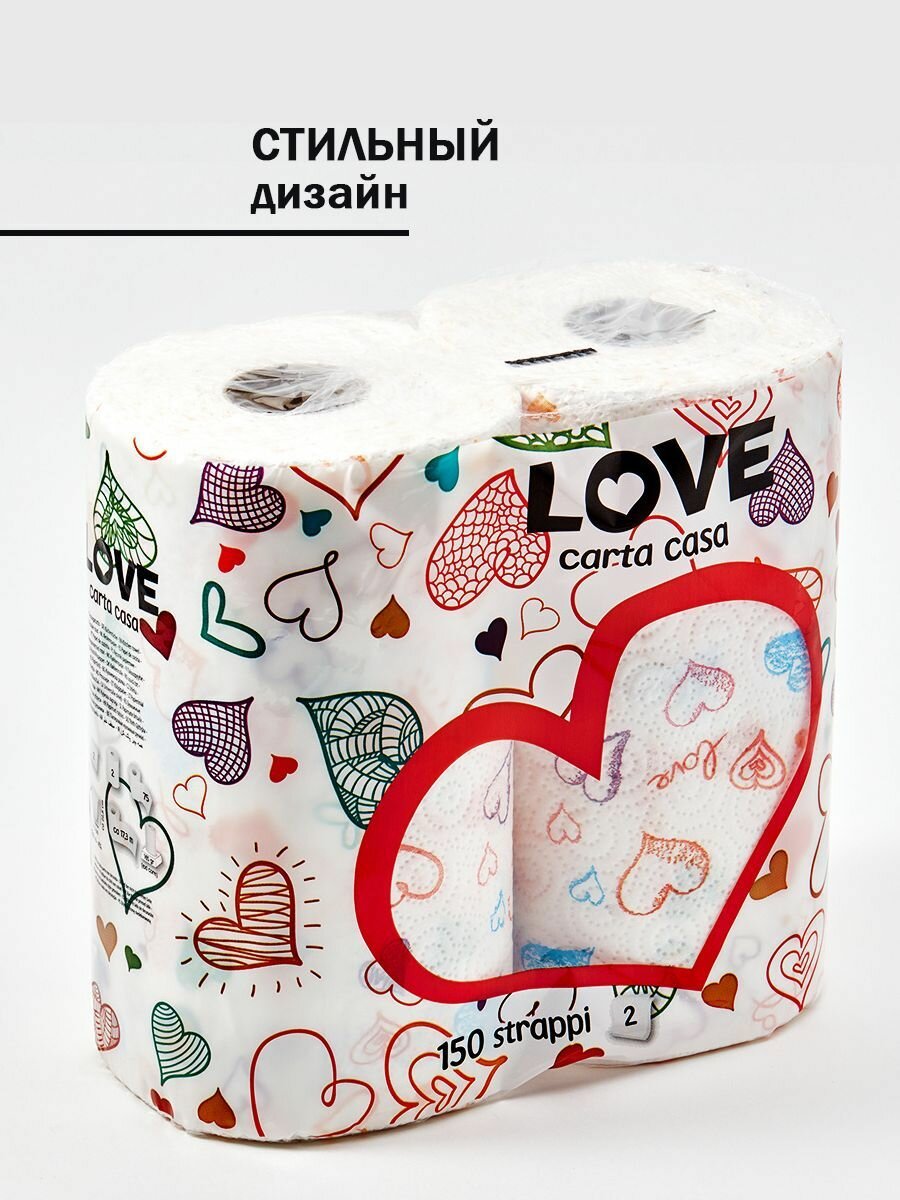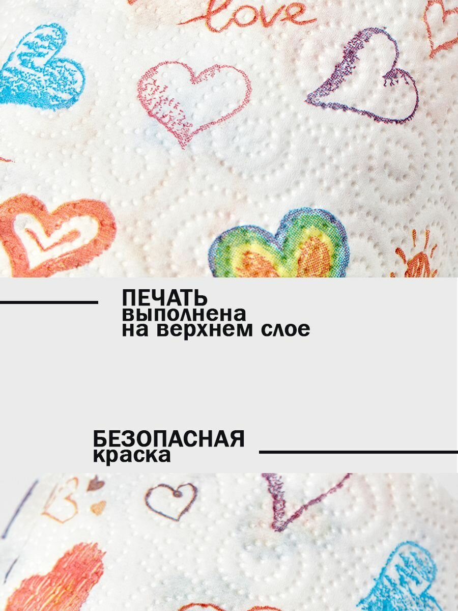 Полотенца бумажные с рисунком "Love" 2 слоя, 75 листов, 2 уп х 2 рул, World Cart