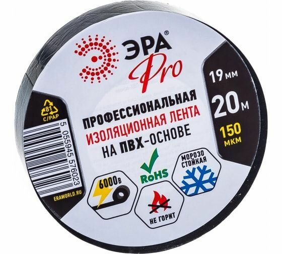 Купить Изолента ПВХ 19ммх20м PRO150BLACK 150мкр проф. черн. ЭРА Б0027917 (5шт.в упак.)