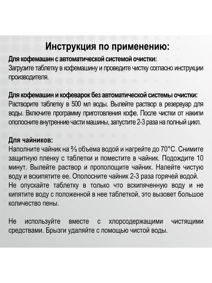 | Плюсы: | Хорошо чистит кофемашину, достаточно одной таблЭтки |