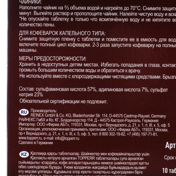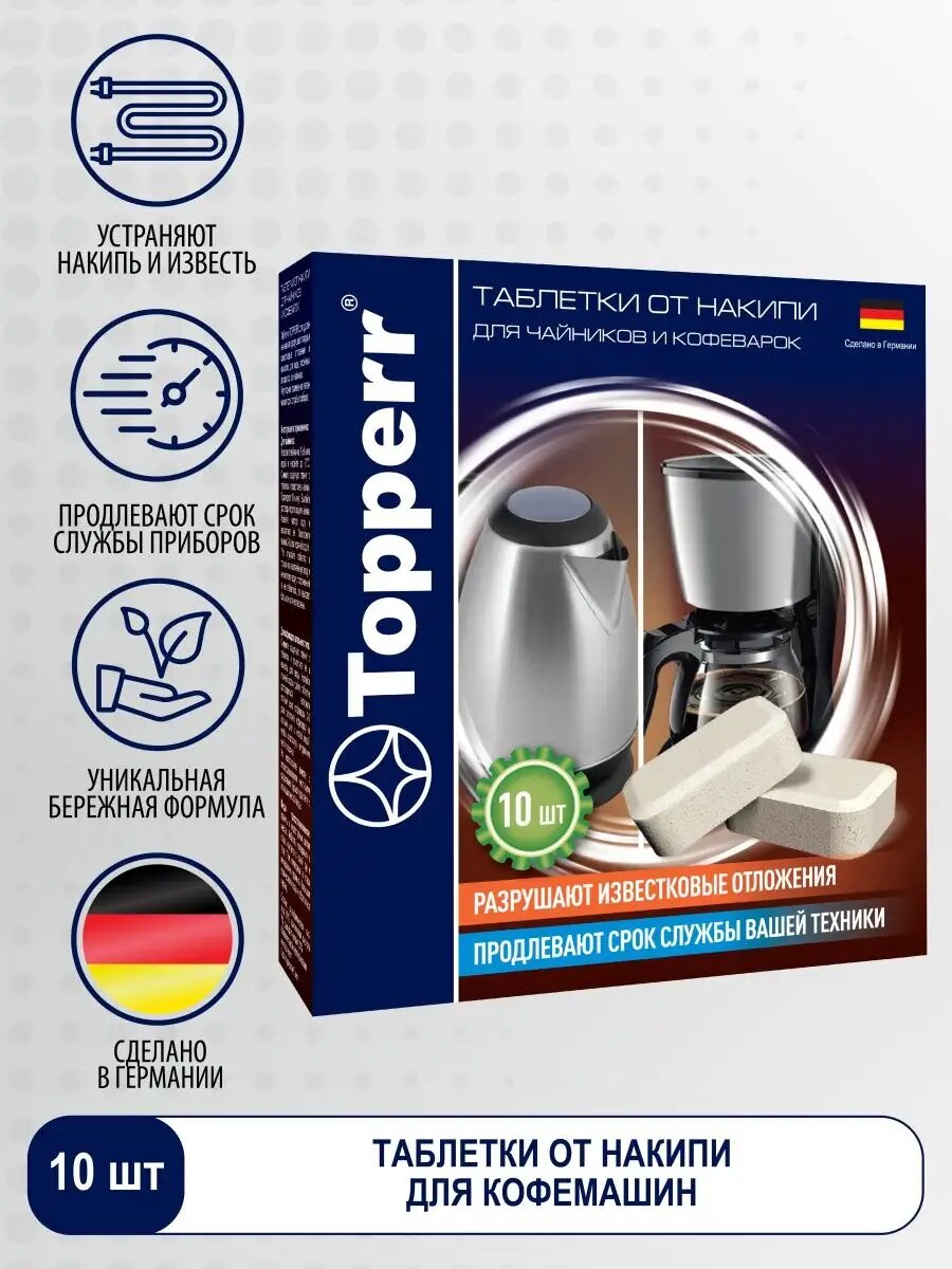 Таблетки от накипи для чайников и кофеварок Topperr, комплект 10 шт