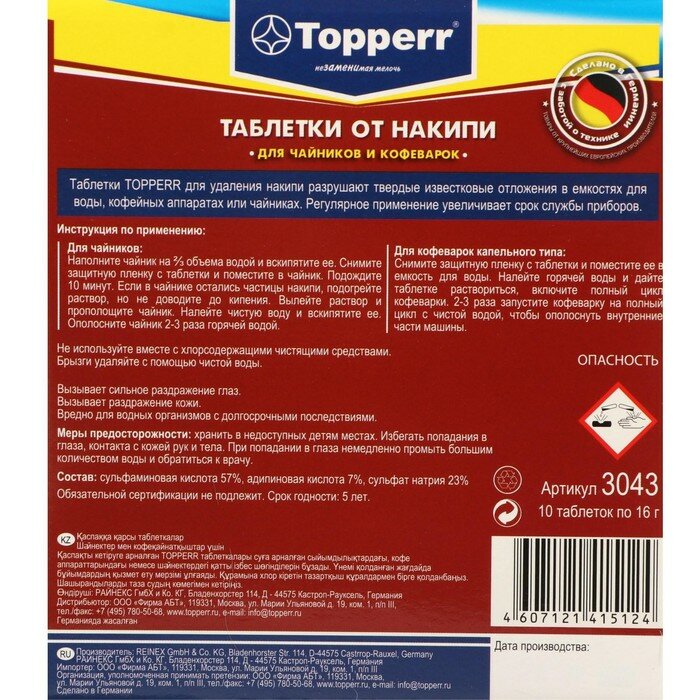 Topperr Таблетки от накипи для чайников и кофеварок - 10 шт, 3043