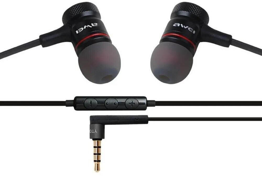 Наушники проводные AWEI ES-70TY Metal, Hi-Fi Powerful Sound Experience, Черный