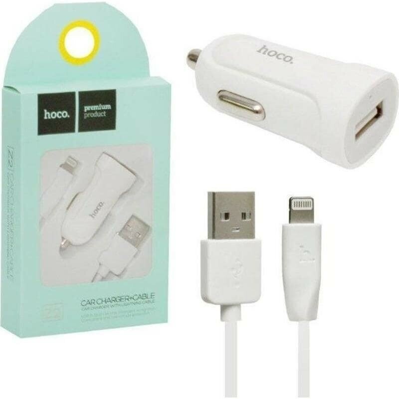 Автомобильное зарядное устройство (АЗУ) Hoco Z2 (USB) + кабель Lightning, 1.5 А, белый