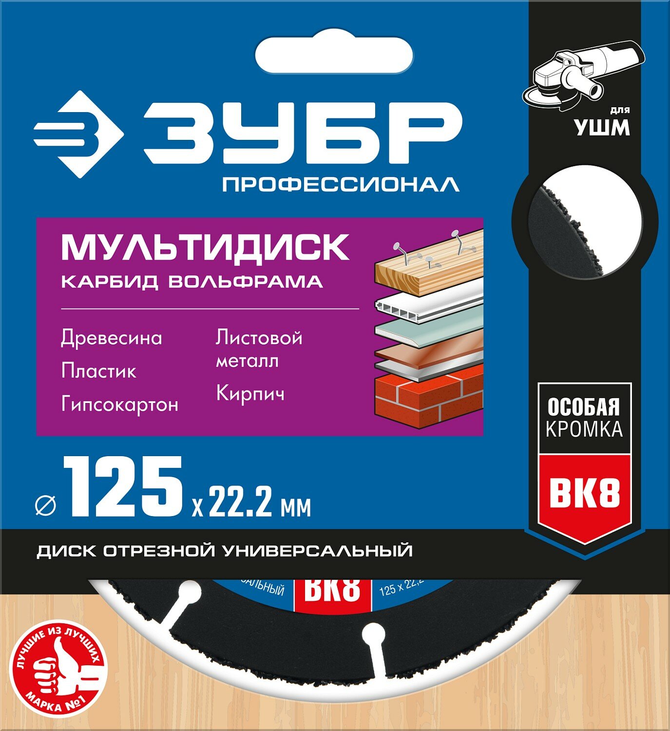 Отрезной круг МУЛЬТИРЕЗ-ВК8 для УШМ 125х22,2 ЗУБР 36859-125