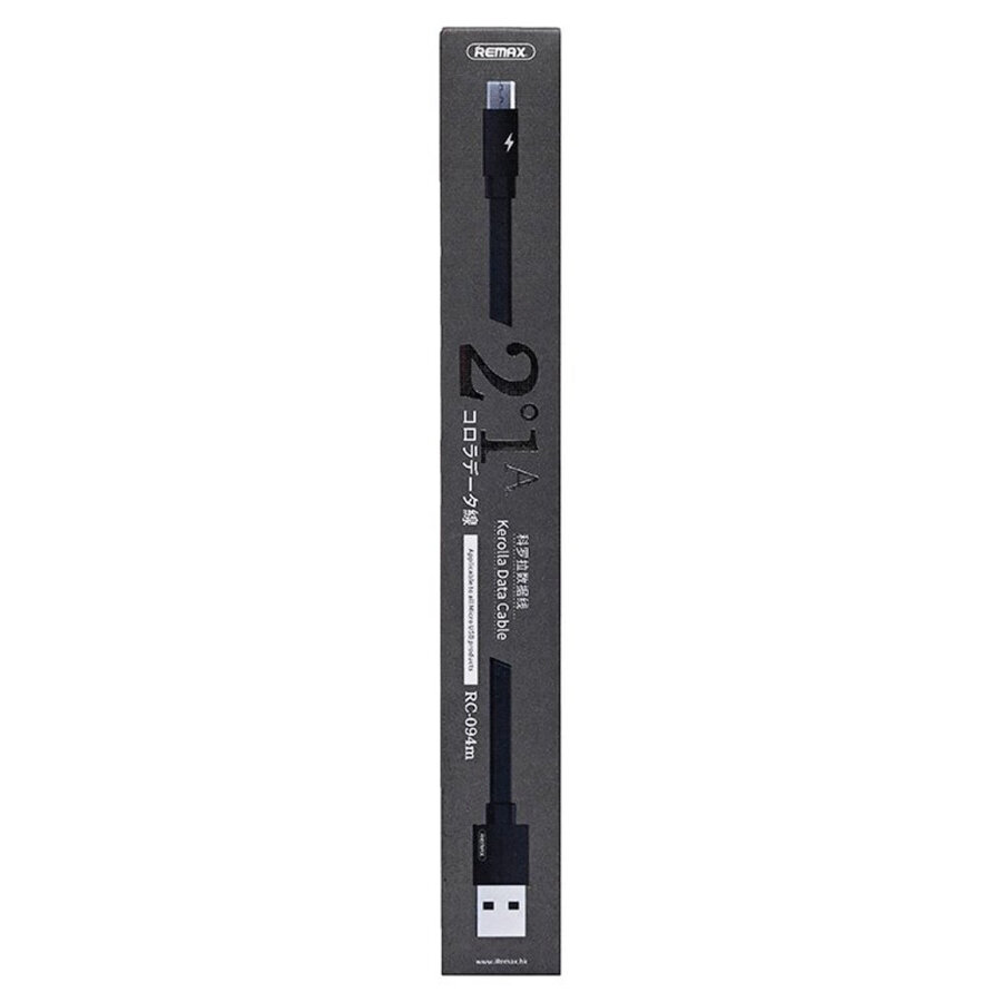 Кабель USB - микро USB Remax RC-094m Kerolla, 2.0м, плоский, 2.1A, силикон, цвет: чёрный