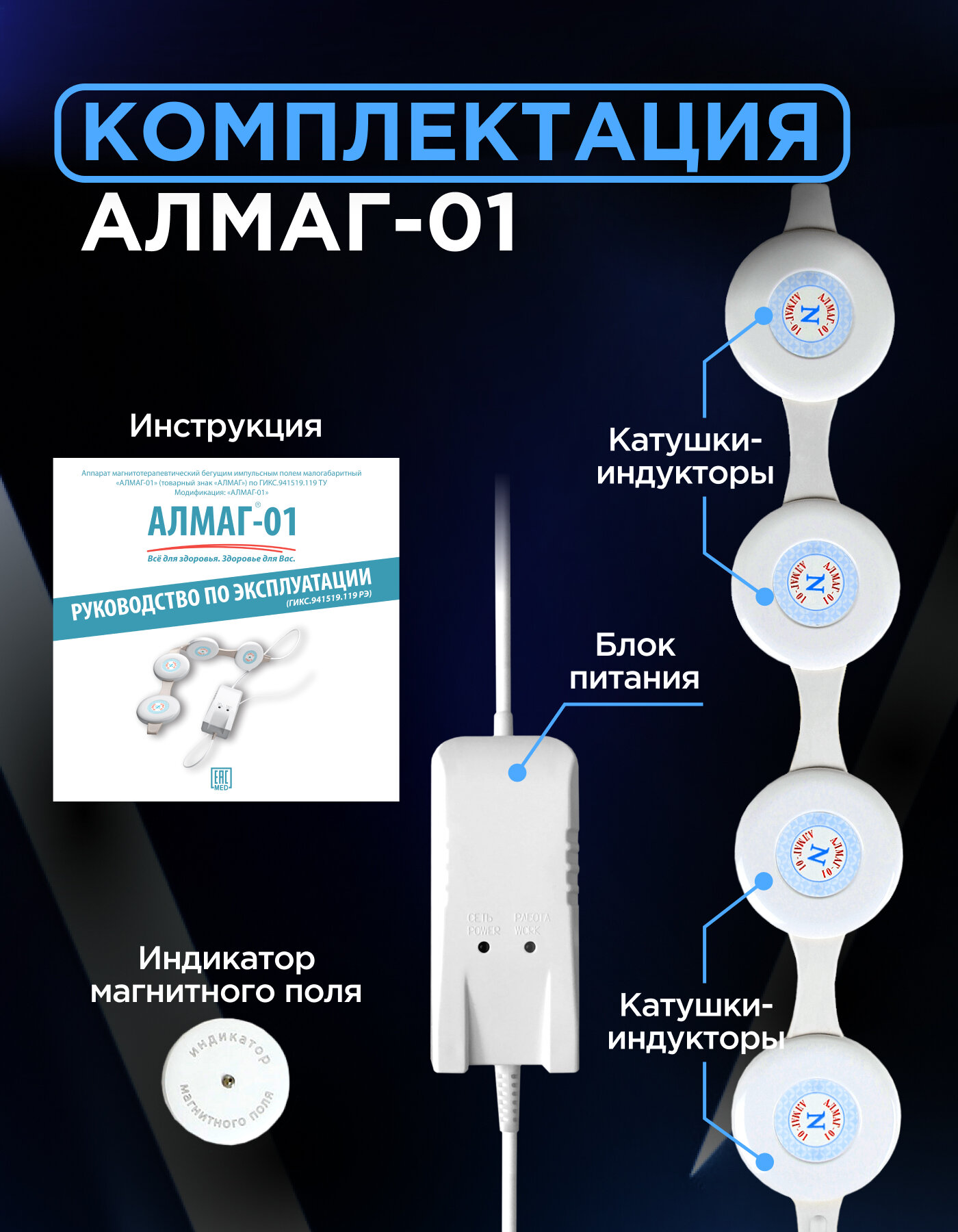 Аппарат магнитотерапевтический бегущим импульсным полем малогабаритный АЛМАГ-01 по ТУ 9444-004-40279992-99