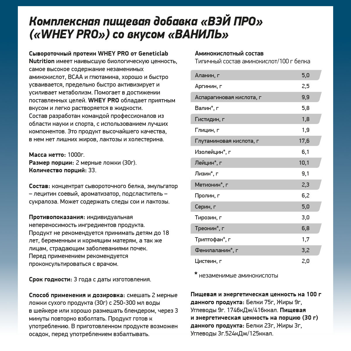 Купить Geneticlab WHEY PRO 1000 г (Ваниль)