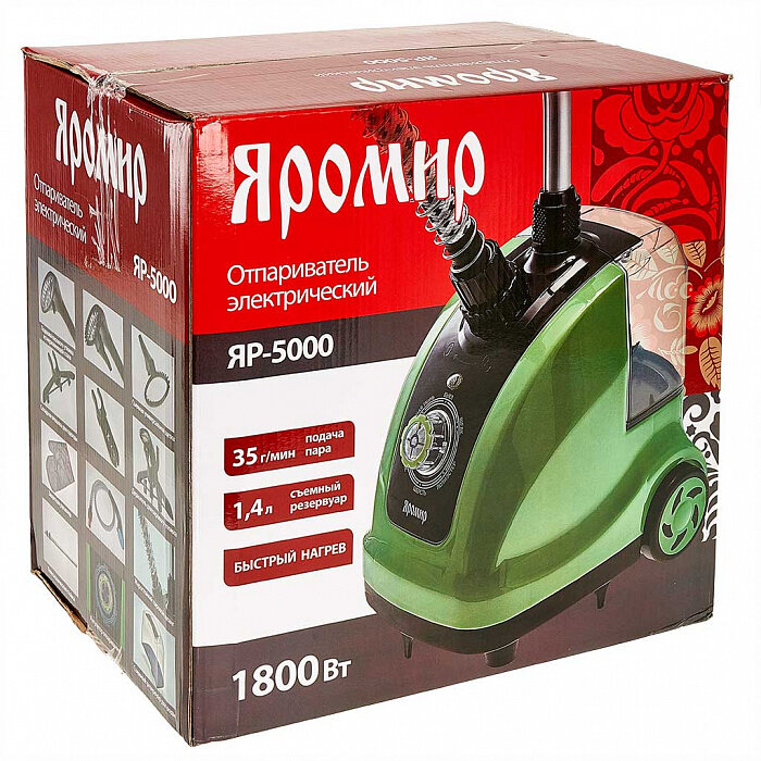Отпариватель электрический яромир ЯР-5000 зеленый с черным, 1800Вт., резервуар для воды - 1,4л