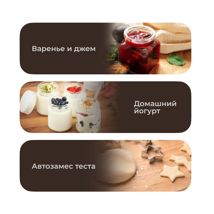 Пока всеми функциями не пользовался, но замесить тесто, сделать хлеб и кексы - это пожалуйста. В планах попробовать домашние йогурты и варенье. Рекомендую. |
