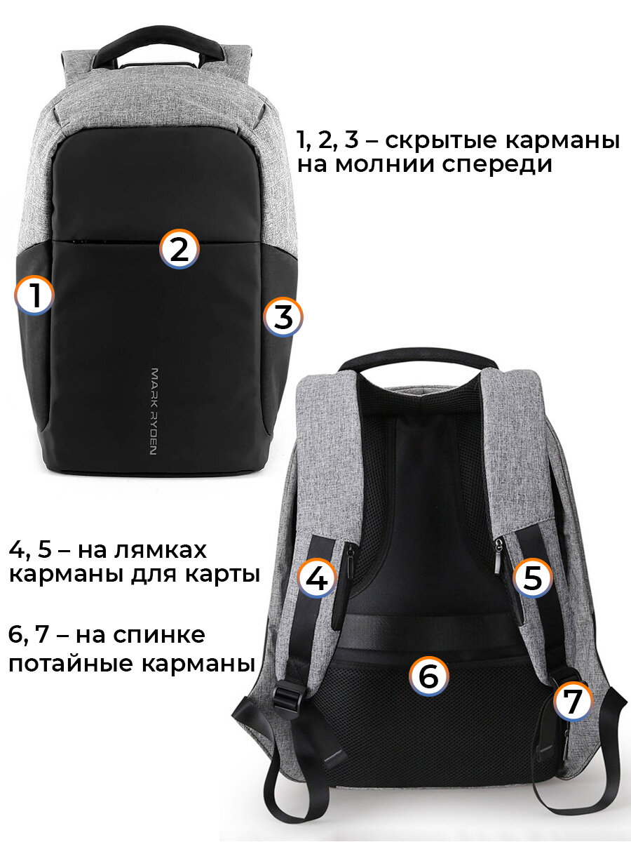 СохранитьРюкзак-антивор Mark Ryden MR5815 - Черный/Серый интересное: