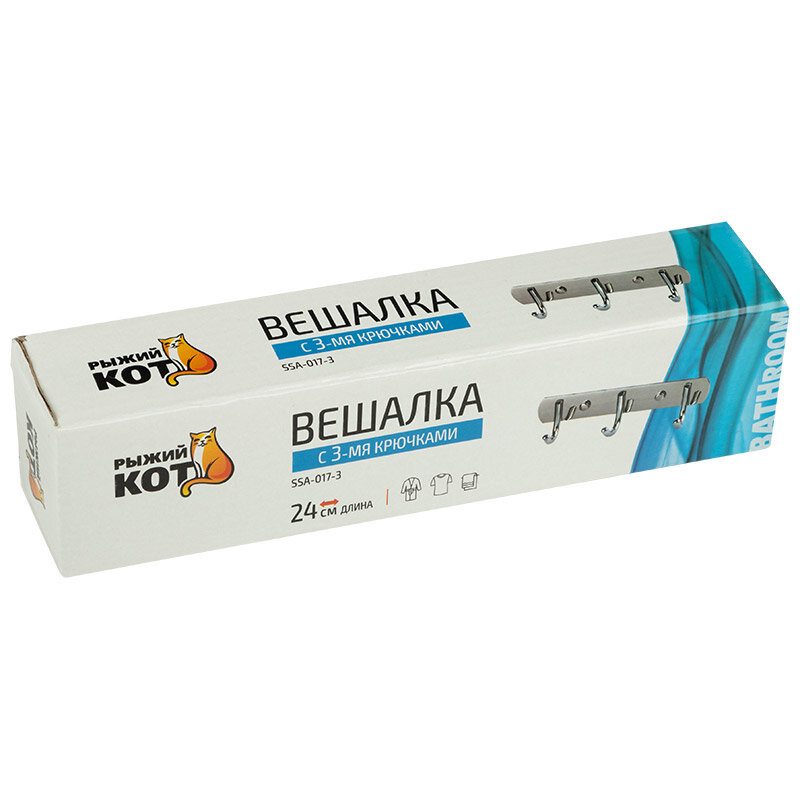 Рыжий кот Вешалка с 3-мя крючками SSA-017-3 нерж.сталь 310788