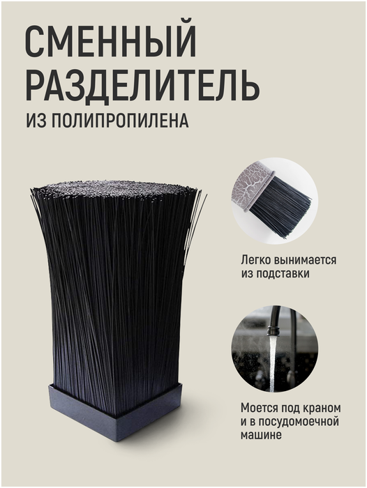 Подставка для ножей с полипроп, разделит, 10*10*22.5см квадрат черная SATOSHI
