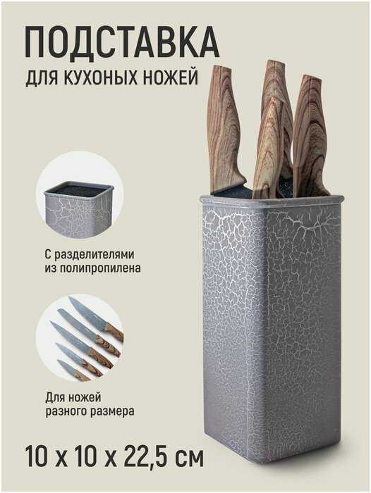 СохранитьSATOSHI Подставка для ножей с полипропиленовыми разделителями, 10x10x22,5см, квадратная, SH-003 интересное: