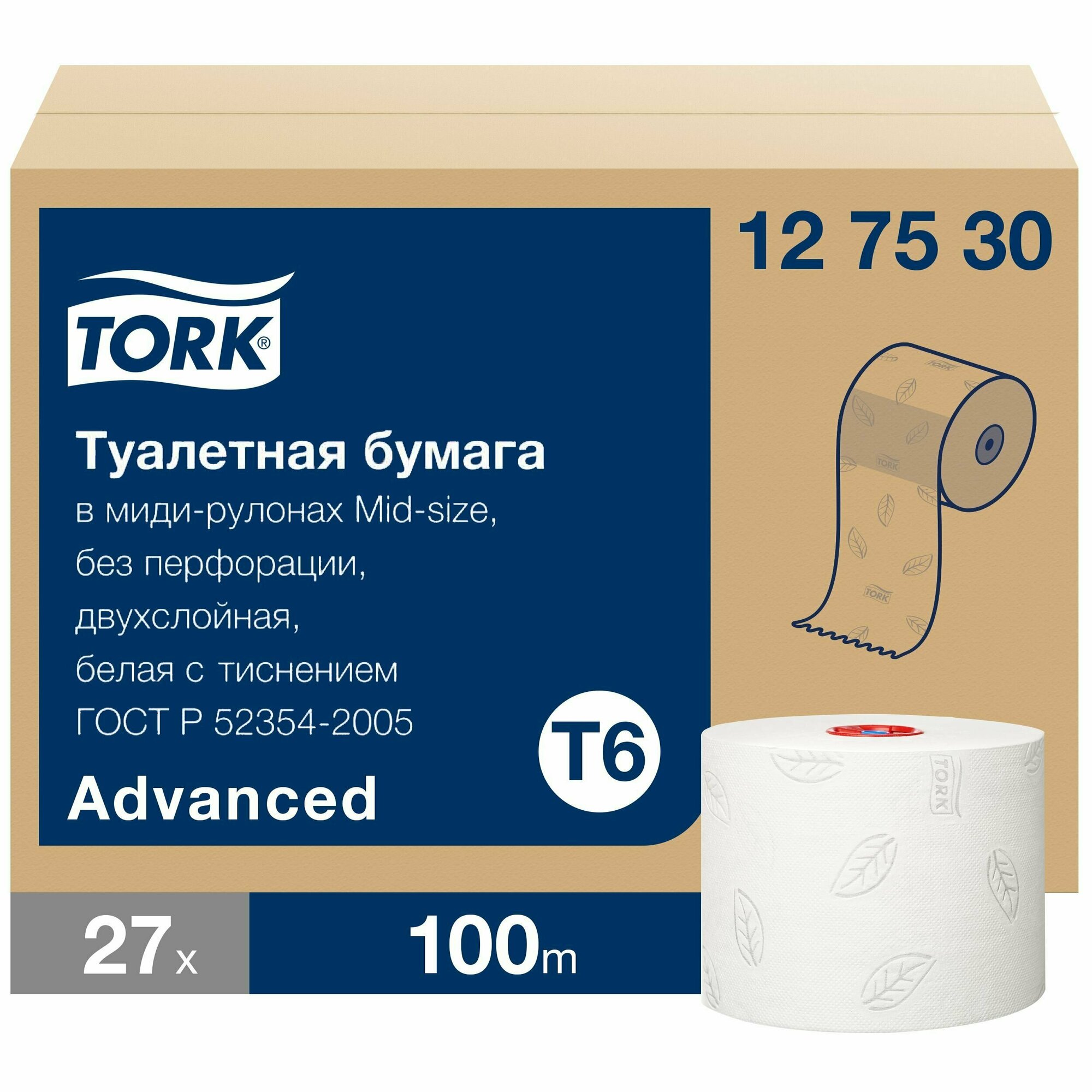 Туалетная бумага Tork Mid-size Advansed, в рулонах, система T6, 100 м, 2 сл., белая, 12 рулонов (арт: 127530)