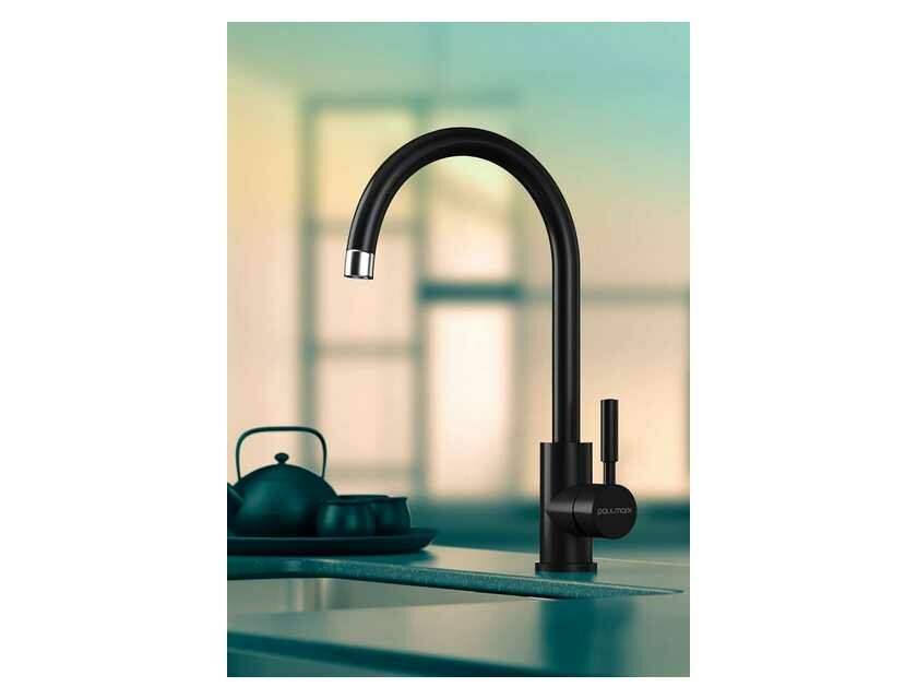 Смеситель для кухни (мойки) Paulmark Holstein, Ho212063-308, черный, поворотный излив, однорычажный