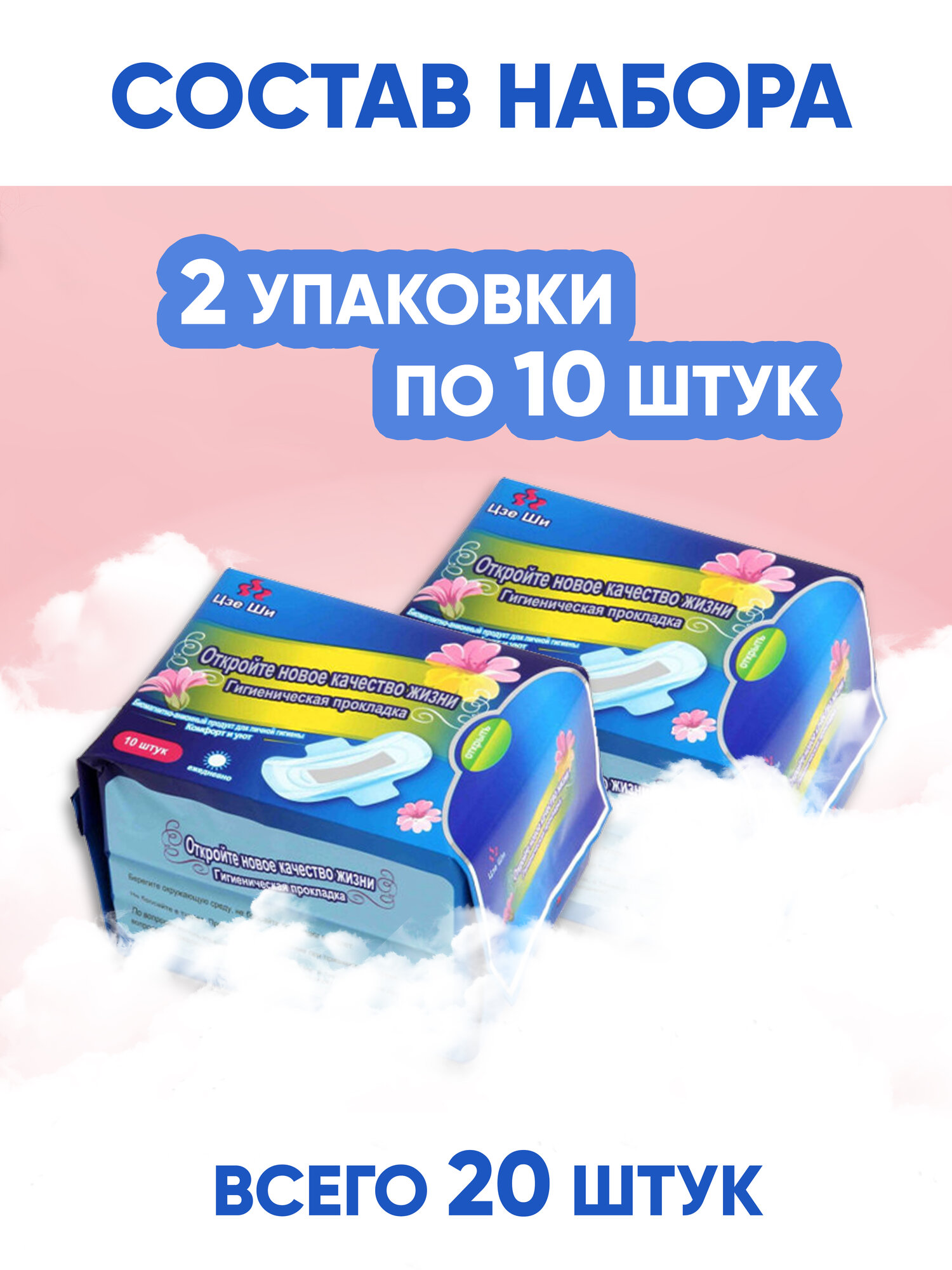 Комплект анионовых женских гигиенических прокладок дневных, 2 упаковки по 10 штук, китайские эко дышащие с крылышками интересное: