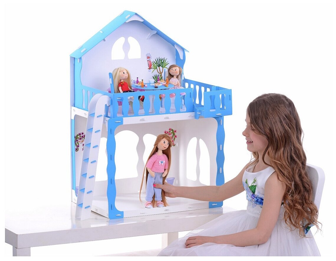 Домик для кукол “Mарина“ для кукол 30 см бело-голубой