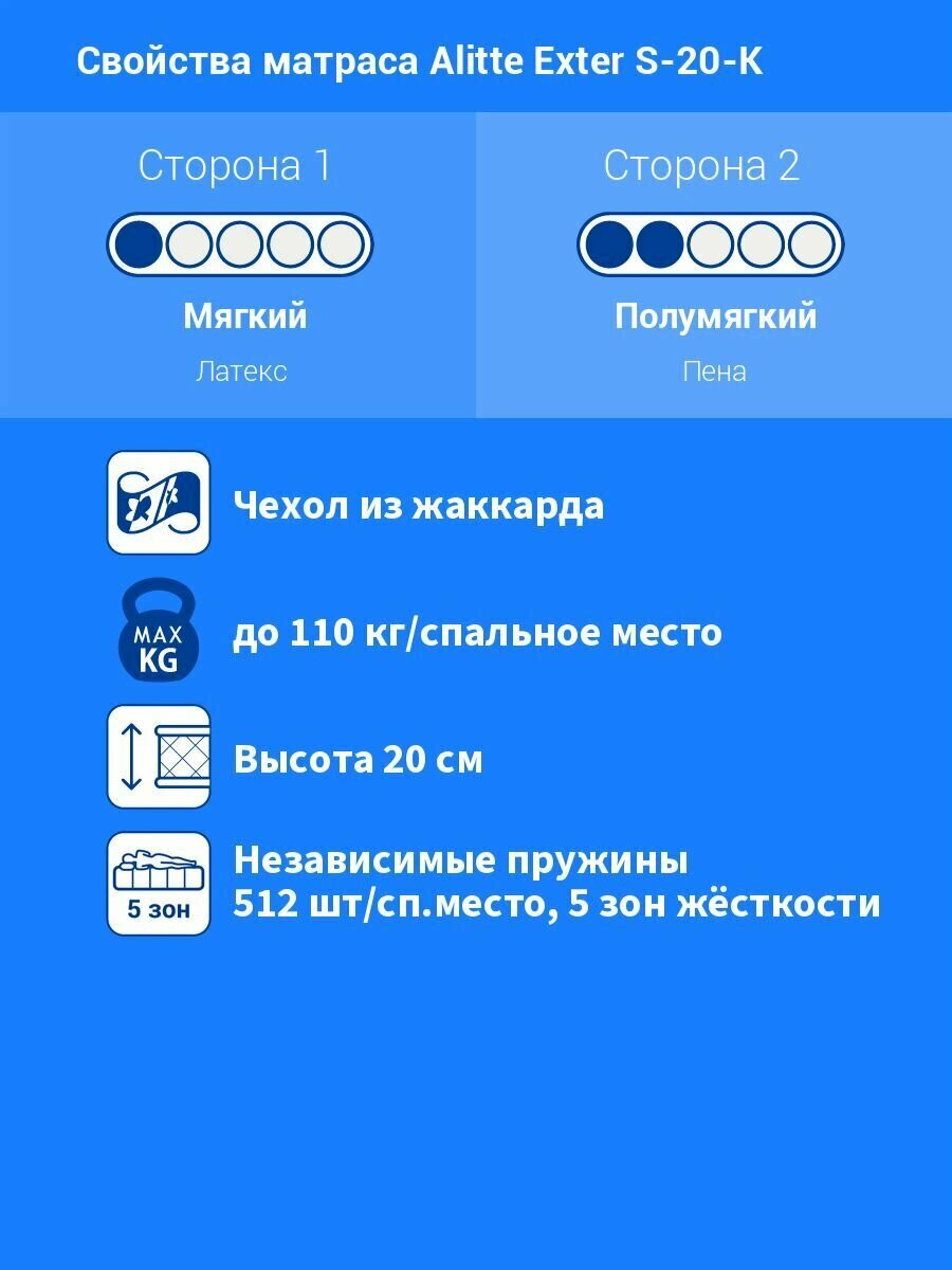 Матрас Alitte Exter S-20-K, Размер 195х200 см