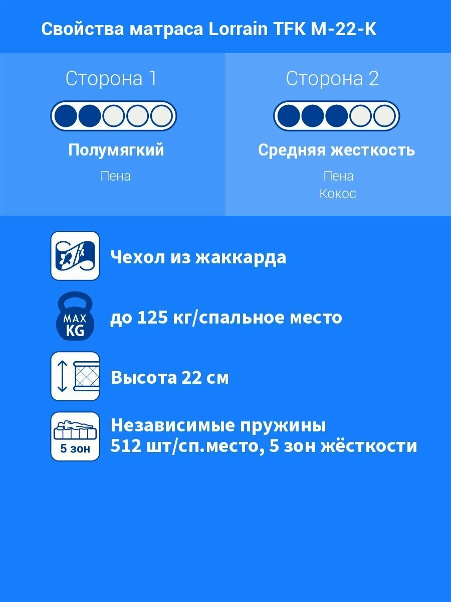 Матрас Alitte Lorrain TFK M-22-K, Размер 175х205 см