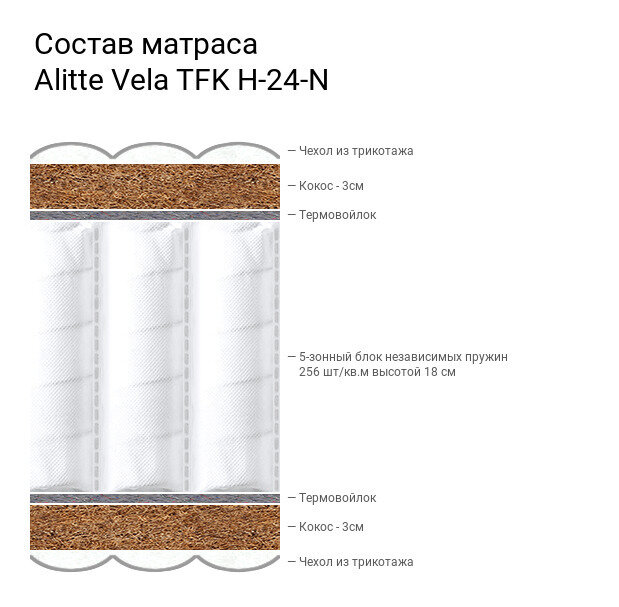 Матрас Alitte Vela TFK H-24-N, Размер 150х185
