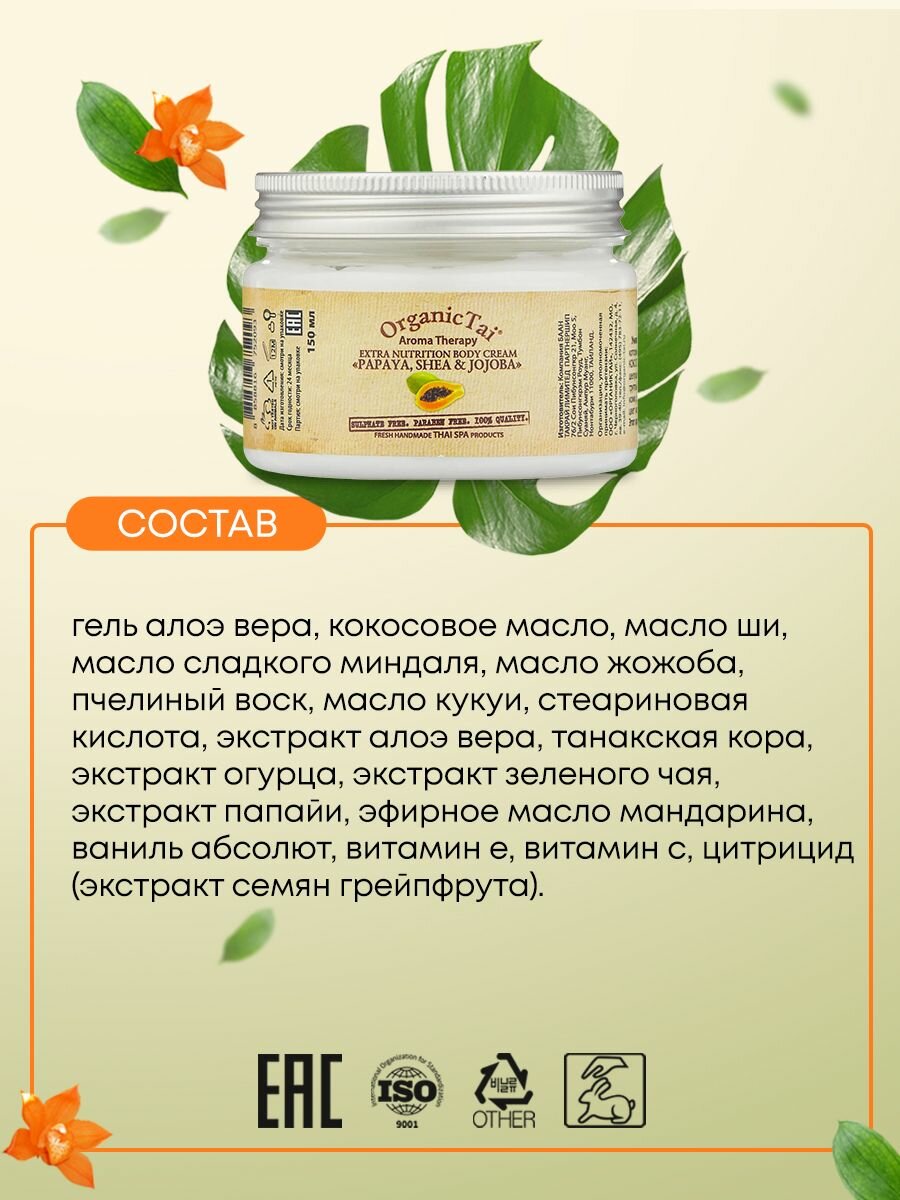 OrganicTai Экстрапитательный крем для тела «папая, ШИ И жожоба», 150 мл, OrganicTai