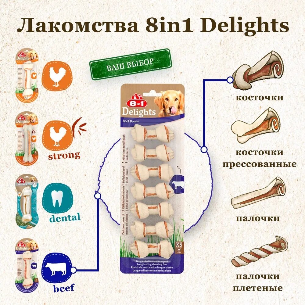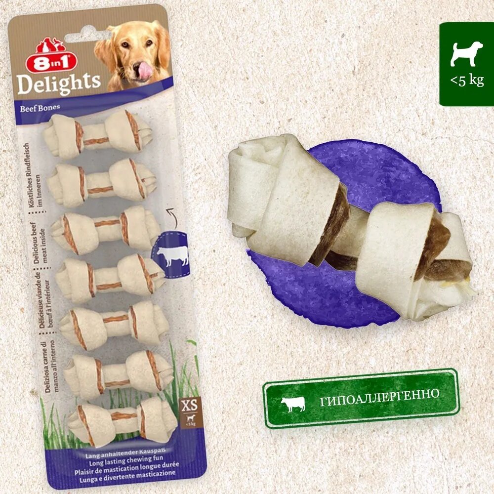 8in1 Delights Beef XS косточки с говядиной для мелких собак (7.5 см.) Говядина, 7 шт.