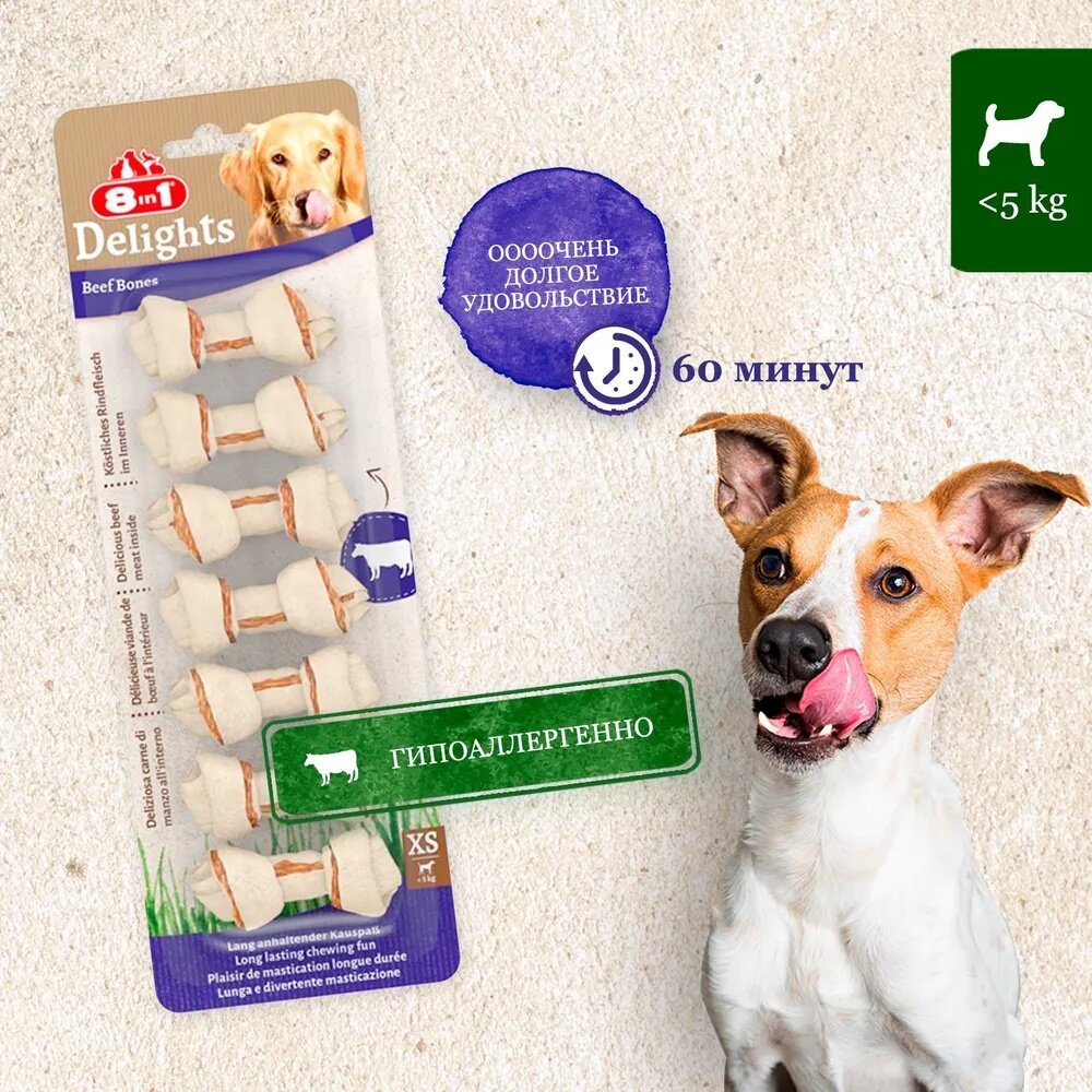 8in1 DELIGHTS Beef XS косточки с говядиной для мелких собак 7,5 см, 84 г х 4 шт.