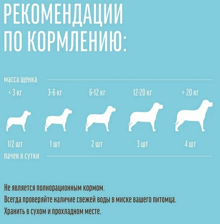 | Плюсы: | Щенок ест с удовольствием, можно отщипывать руками кусочки поменьше |