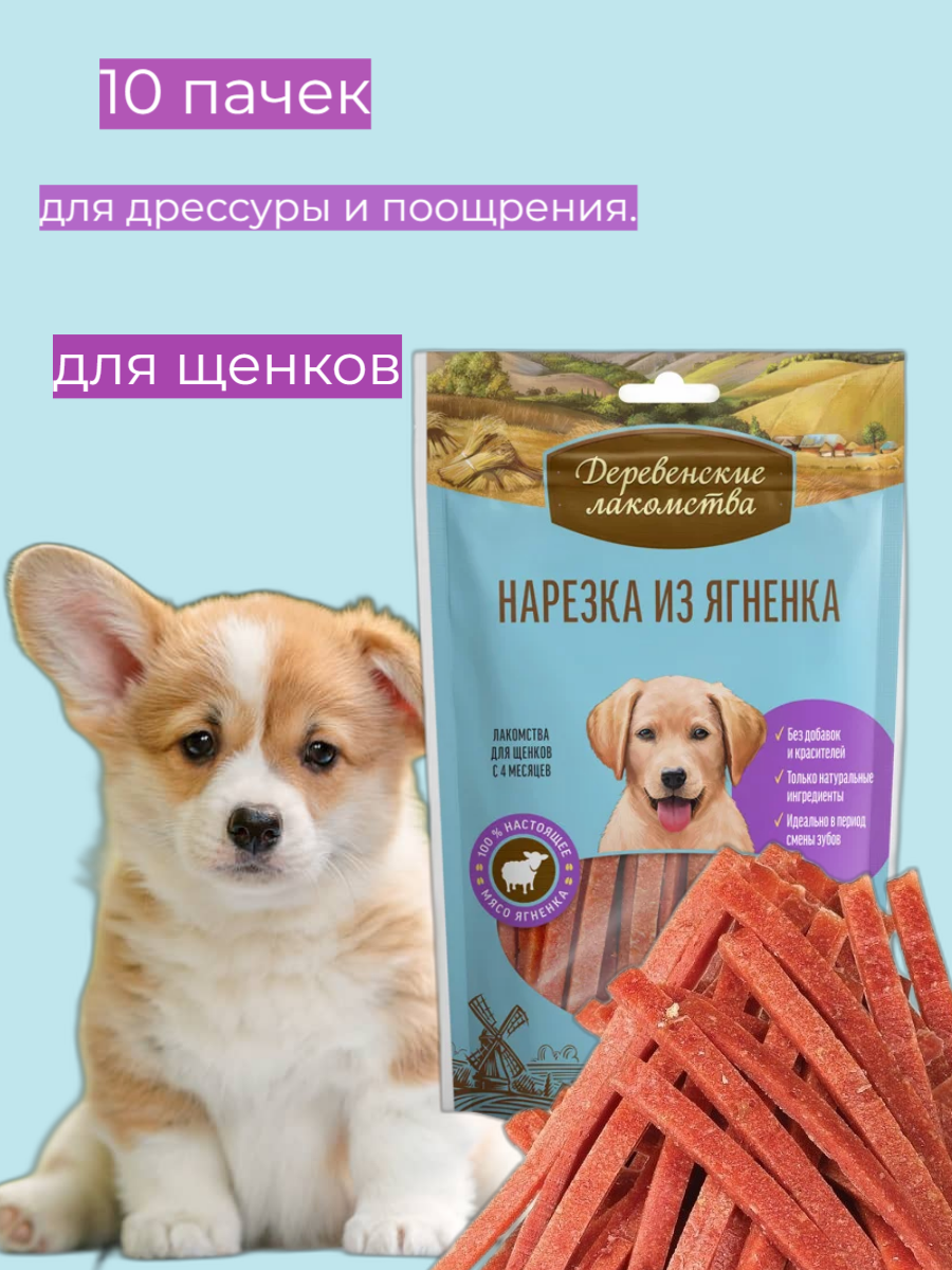 Купить Лакомство для собак Деревенские лакомства Нарезка из ягненка для щенков, 900 г 90 г х 10 уп.