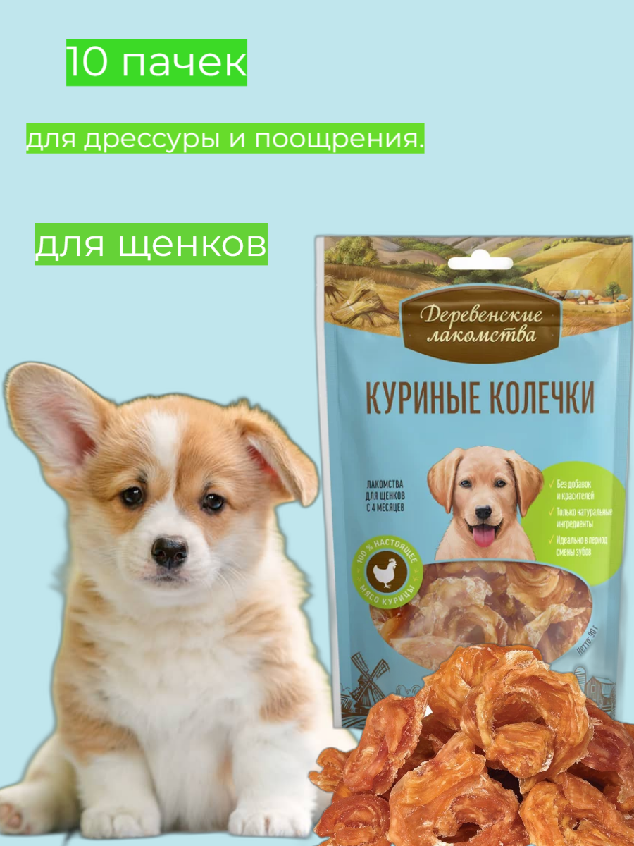 Купить Лакомство для собак Деревенские лакомства Куриные колечки для щенков, 900 г 90 г х 10 уп.