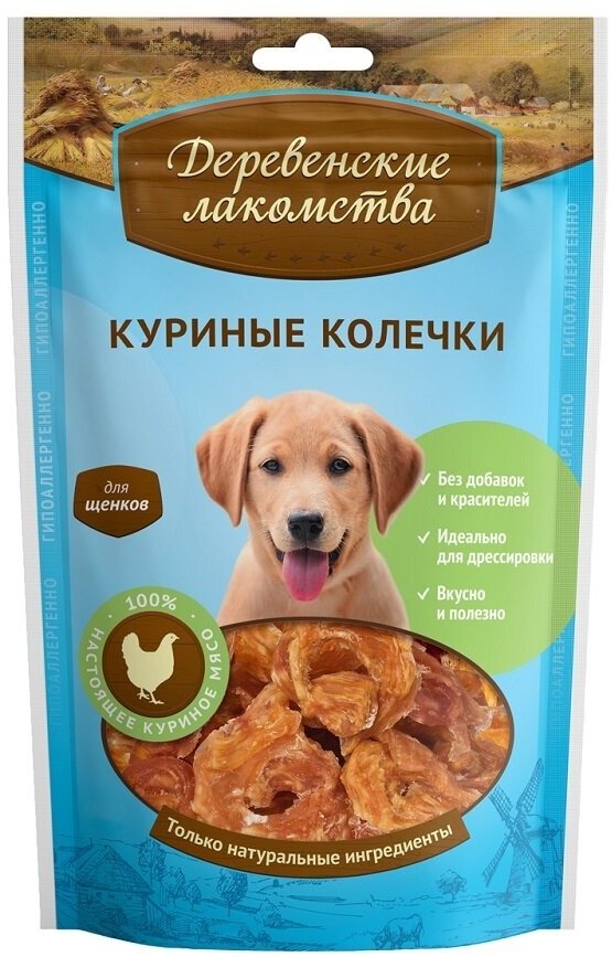 Лакомство для щенков "Деревенские лакомства" Куриные колечки, 10 шт., (90 гр.)