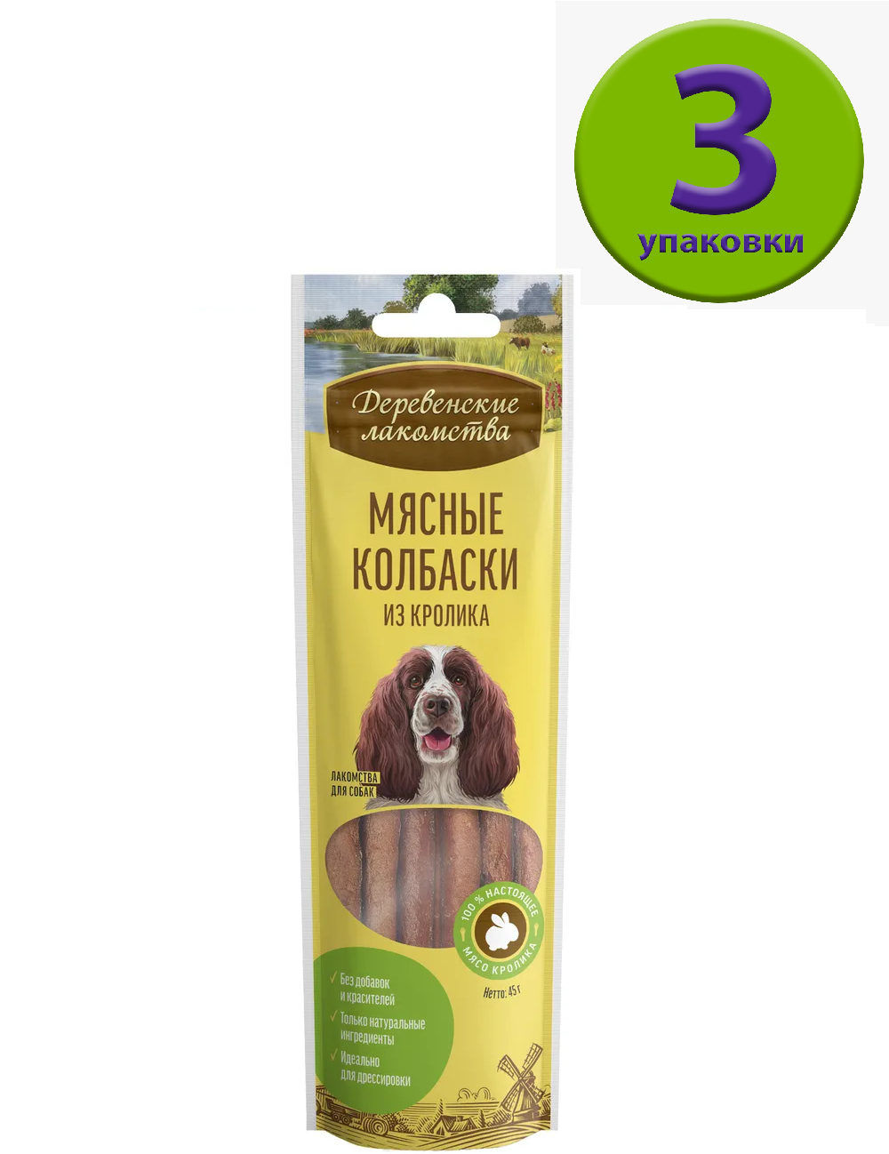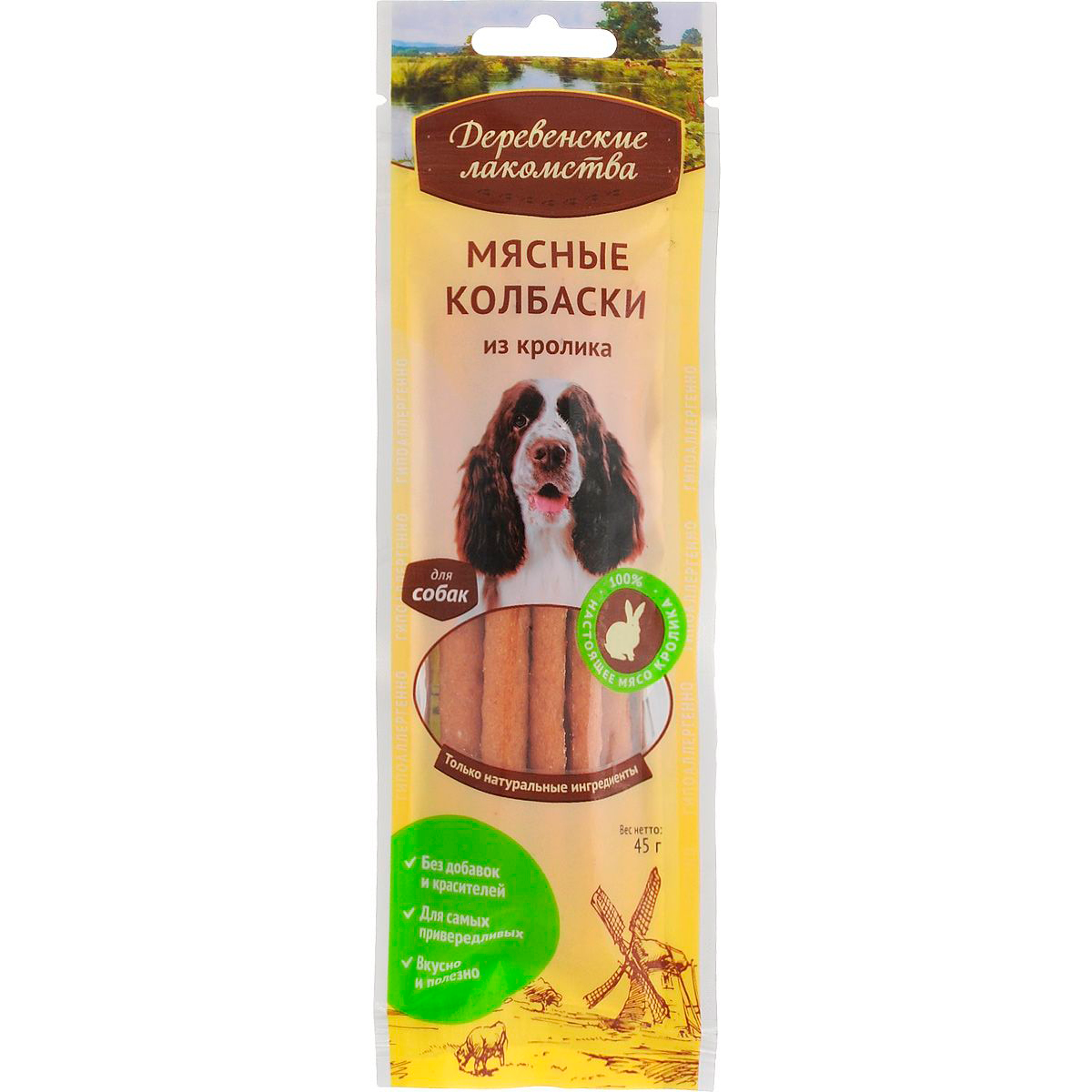 Деревенские лакомства 45 г мясные колбаски из кролика для собак 7 шт
