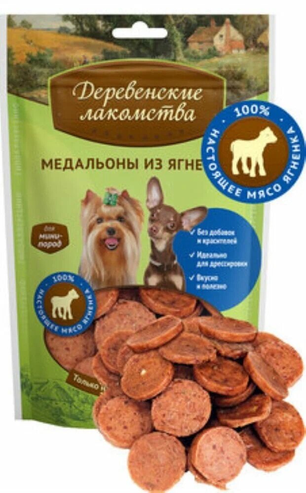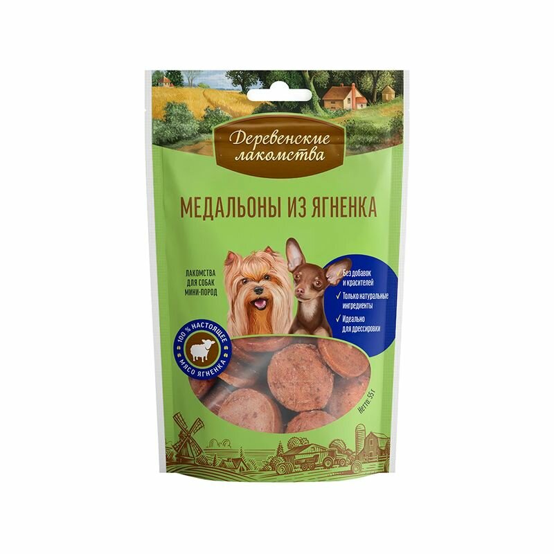 Деревенские лакомства "Медальоны из ягненка" для мини пород собак пакет, 55 гр