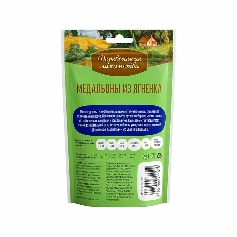 Лакомства Деревенские лакомства д/собак мини-пород Медальоны из ягненка 55г