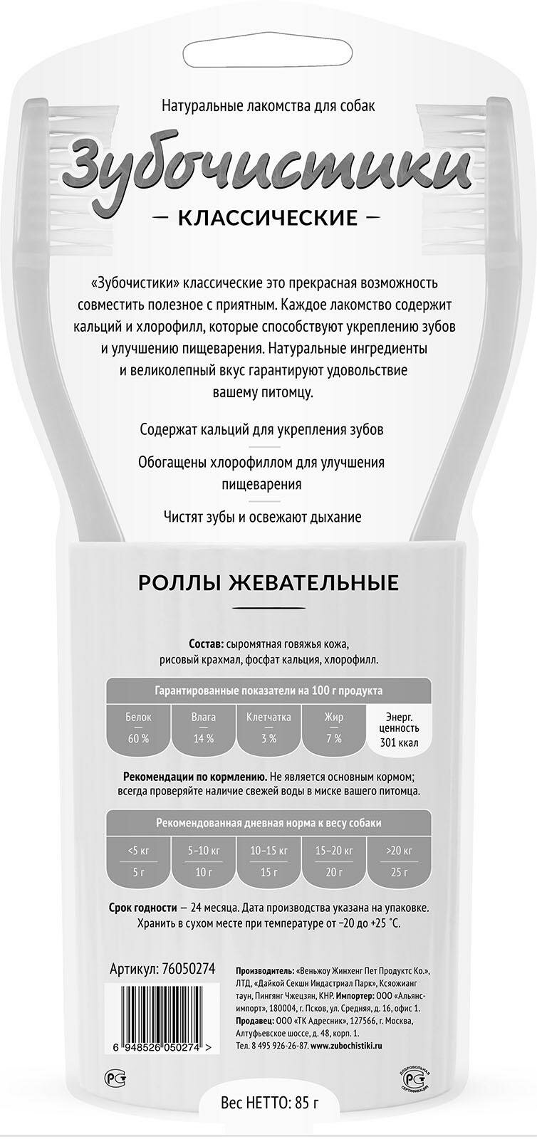 Зубочистики Классические Лакомство д/собак Роллы жевательные 3 шт 85 г