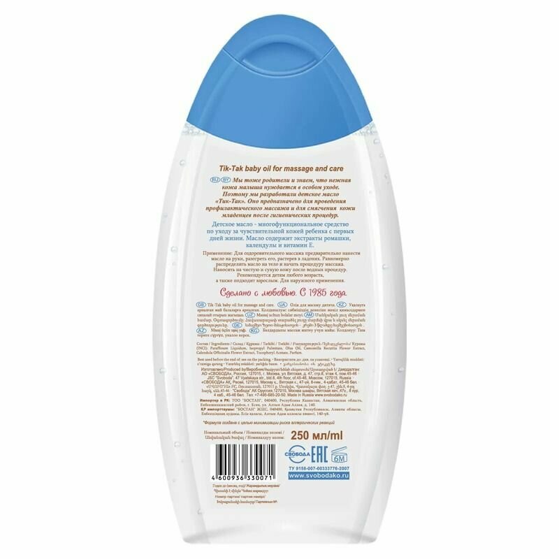 Свобода Детское масло для массажа и ухода ТИК-ТАК 0+, 250 мл