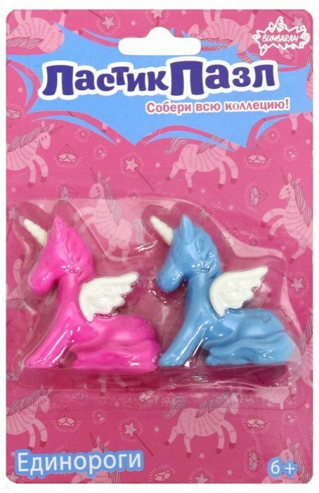 Бумбарам ластик-пазл Единороги розовый / голубой интересное:
