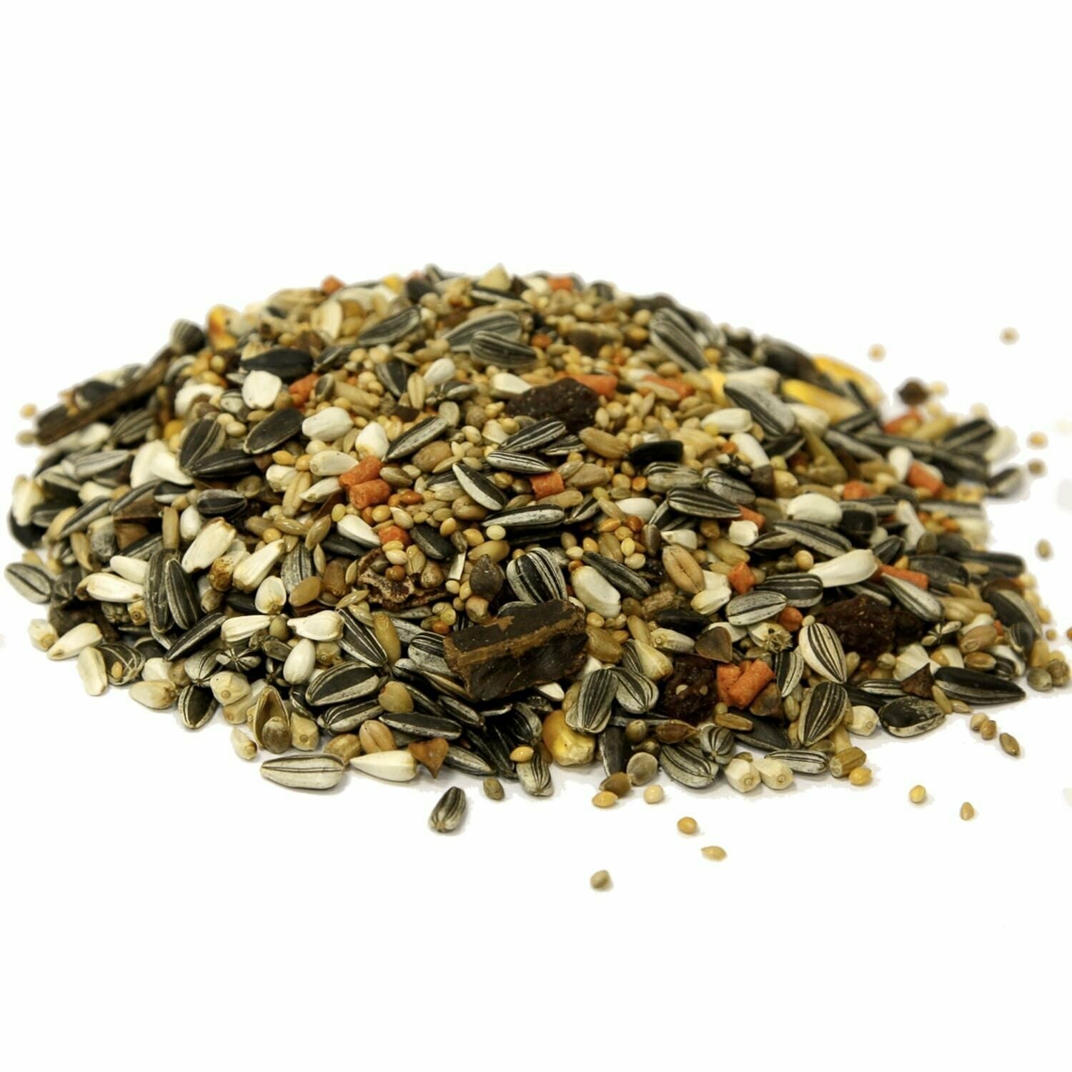 | Минусы: | Слишком много семечек. Просеиваю и убираю большую часть семечек перед тем как насыпать в кормушку, мой попугай любит семена поменьше. |