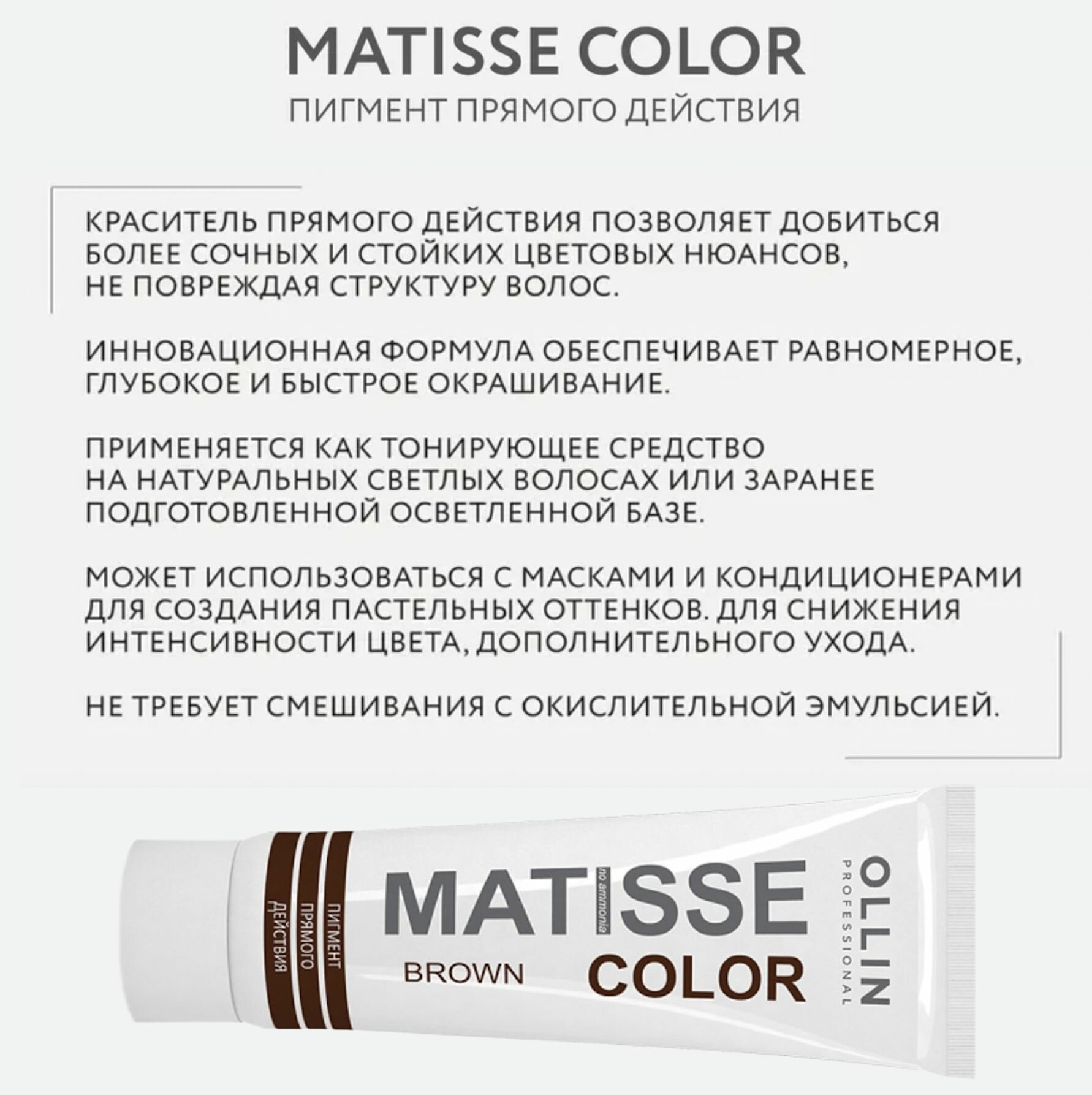 Купить Ollin Matisse Color - Оллин Матисс Колор Оттеночный пигмент прямого действия, 100 мл - Матисс Колор Коричневый