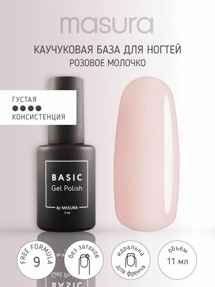 Masura, BASIC Nude Rubber Base - Молочно-Розовая, 11 мл